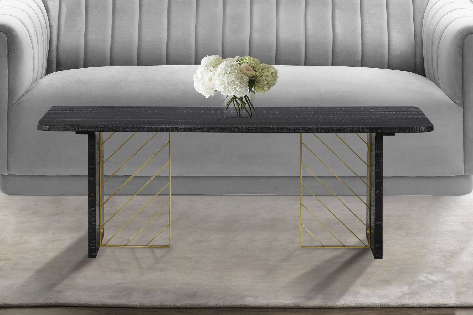 Monaco Black Wood Coffee Table with Antique Brass Accent By Armen Living