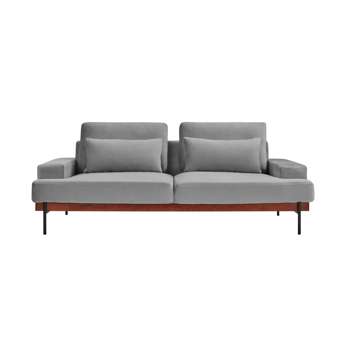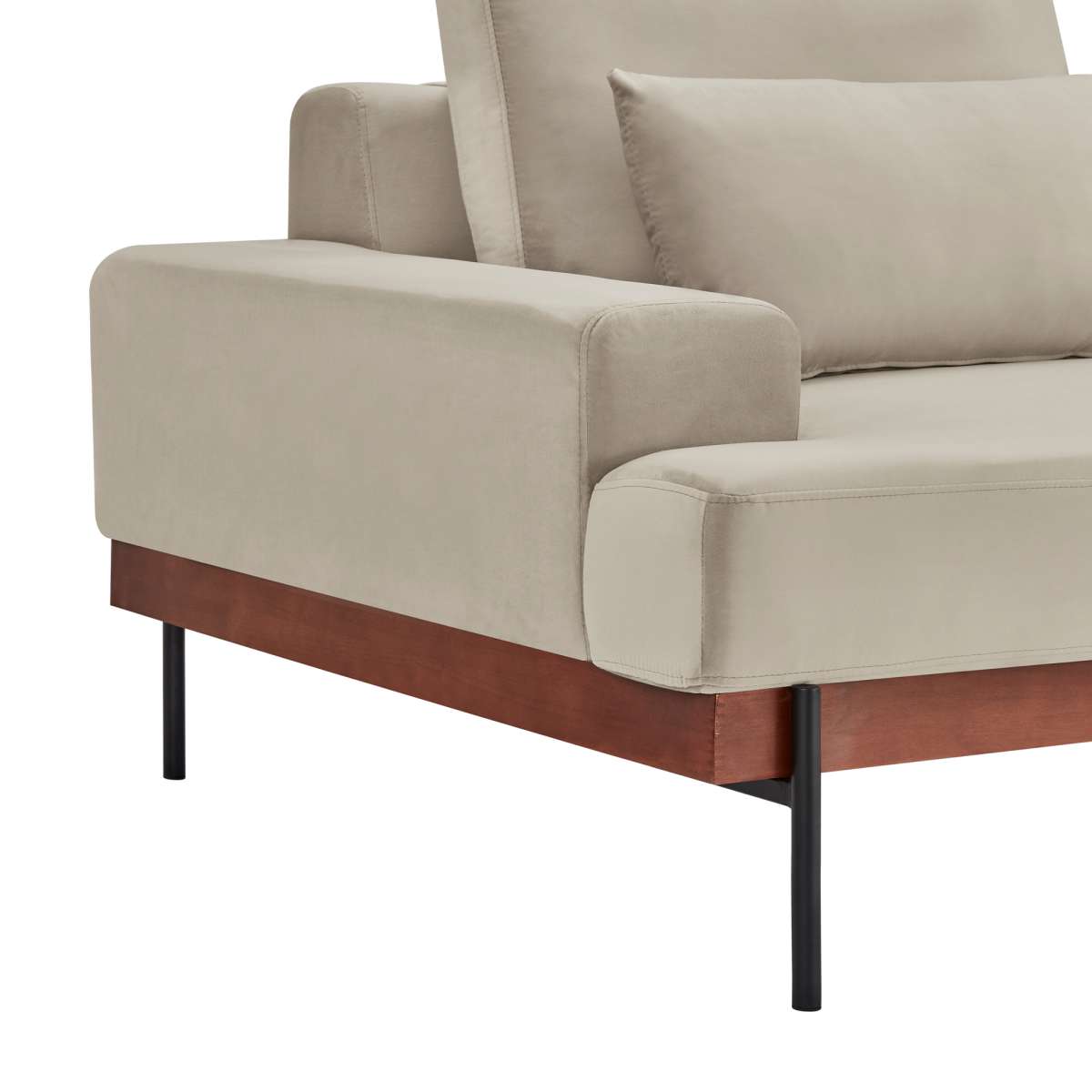 The Monet Mid-Century Modern Velvet Sofa from Armen Living is a simple equation: style plus sophistication equals this wonder piece of furniture. The Monet Sofa is wrapped in a soft velvet upholstery, featuring low arm rests and a wide seat which each contribute to the sophistion in their own way. The thick foam-padded cushion is absolutely relaxing and will keep you at ease all day long. This sofa ships with two additional toss pillows to accessorize with. The Monet is available in your color choice of Gray and Beige velvet.