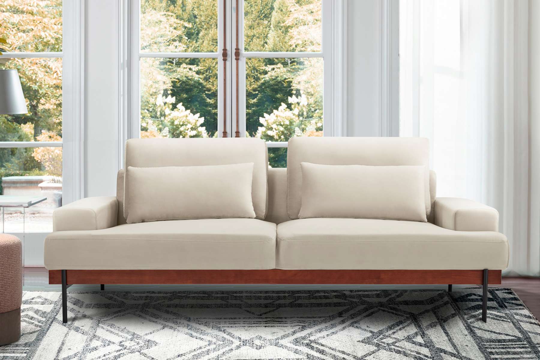 Monet 86" Mid-Century Modern Beige Velvet Sofa By Armen Living