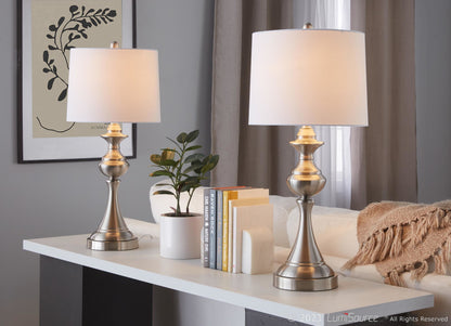 The Montgomery Table Lamp from Grandview Gallery by LumiSource is the perfect addition to any space to provide additional light. These table lamps feature a linen lampshade with a tiered lamp body. They add the perfect finishing touch to any space. The classic and contemporary design elements ensure these lamps perfectly complement any space.