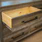 | Gray and Brown Distressed/Wire Brushed finish 7 drawer solid wood dresser. |