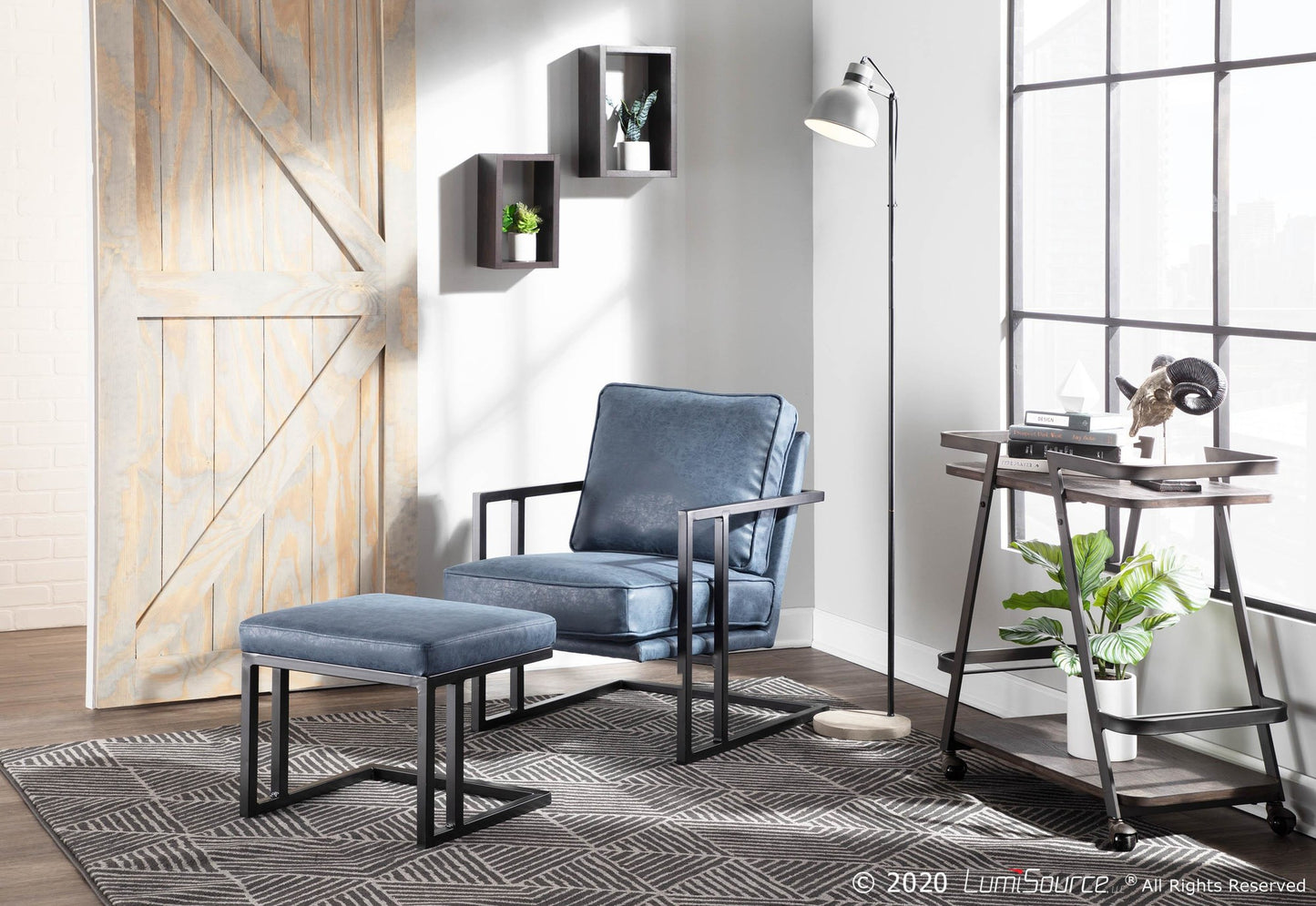 Sharp and clean, the mixed material design of the LumiSource Lounge and Ottoman is a great addition to any industrial modern aesthetic. Featuring an angular metal frame, a plush padded seat, and upholstered in a comfortable faux leather or fabric, this set is perfect for your living, office or bedroom area. Available in a variety of colors, choose the one that fits your space the best.