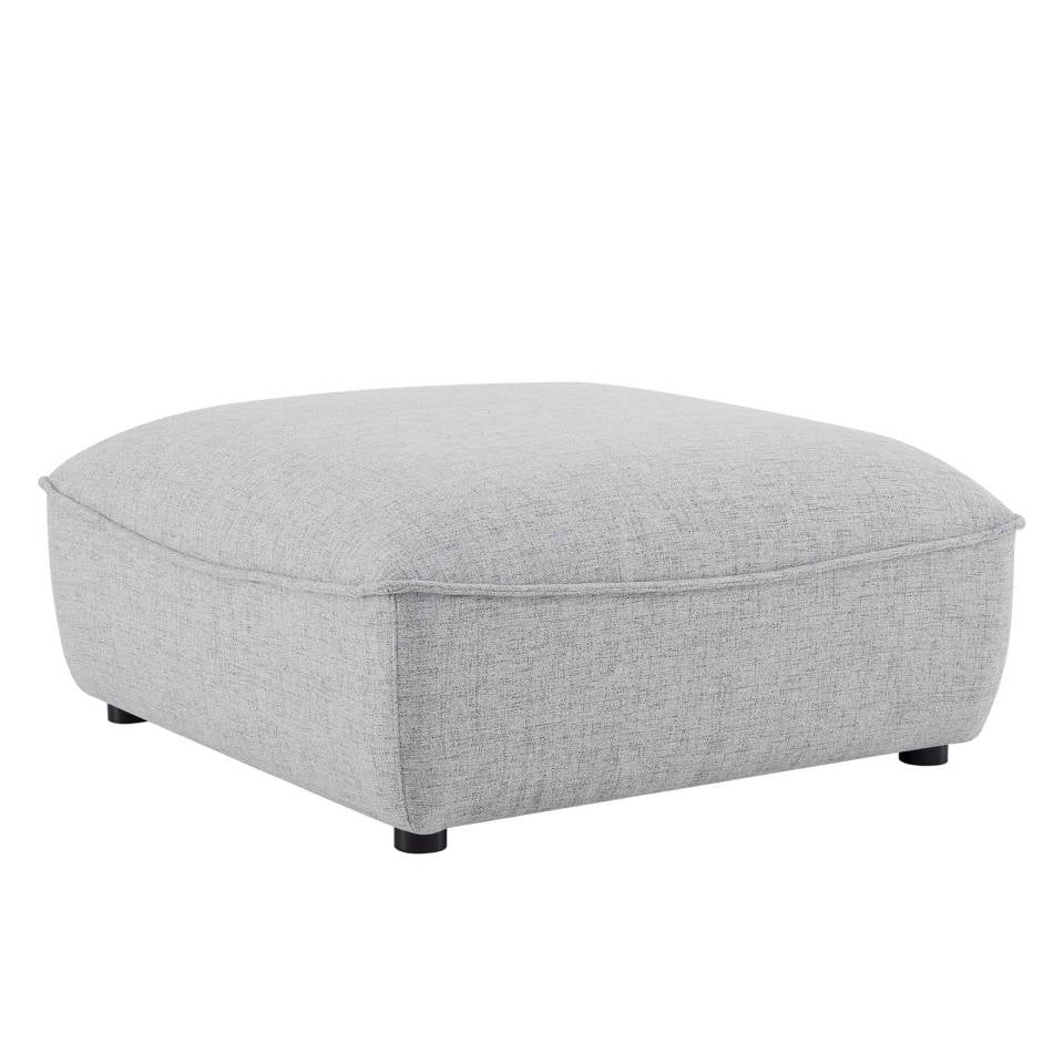 Indulge in cozy relaxation in the comfort of your own home with the Comprise Upholstered Sectional Sofa Ottoman. A casual design accented with French piping details, this sectional sofa piece features dense foam padding, soft polyester upholstery and a pocket coil spring system to offer a premium seating experience. Solidly constructed with solid wood and plywood, this upholstered sectional sofa collection rests atop sturdy rubberwood legs with secure connectors between modular pieces. Create a custom living room or lounge area with the Comprise Living Room Furniture Collection. Ottoman Weight Capacity: 400 lbs.