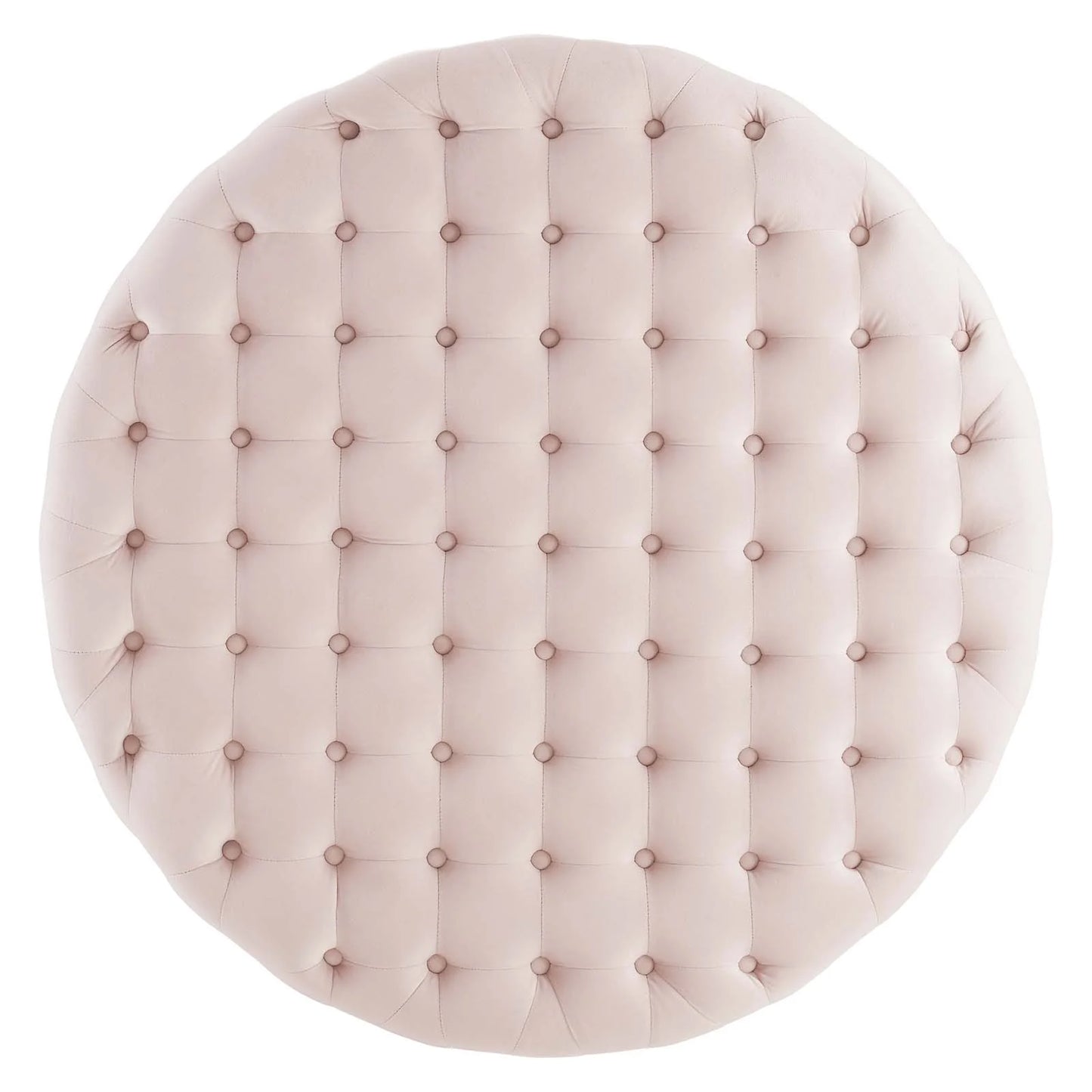 Revive decor in your living space with the Ensconce Tufted Performance Velvet Round Ottoman. Rich in tactile luxury and glam deco style, this round ottoman features deep button tufting and gold metal accents, and serves as both a comfortable choice for extra seating space or a unique coffee table in your living room. Covered in soft, stain-resistant performance velvet, this upholstered ottoman is densely padded in foam and rests atop a sturdy gold stainless steel base. Complete with plastic foot caps to protect flooring. Weight Capacity: 300 lbs. Set Includes: One - Ensconce Tufted Round Ottoman