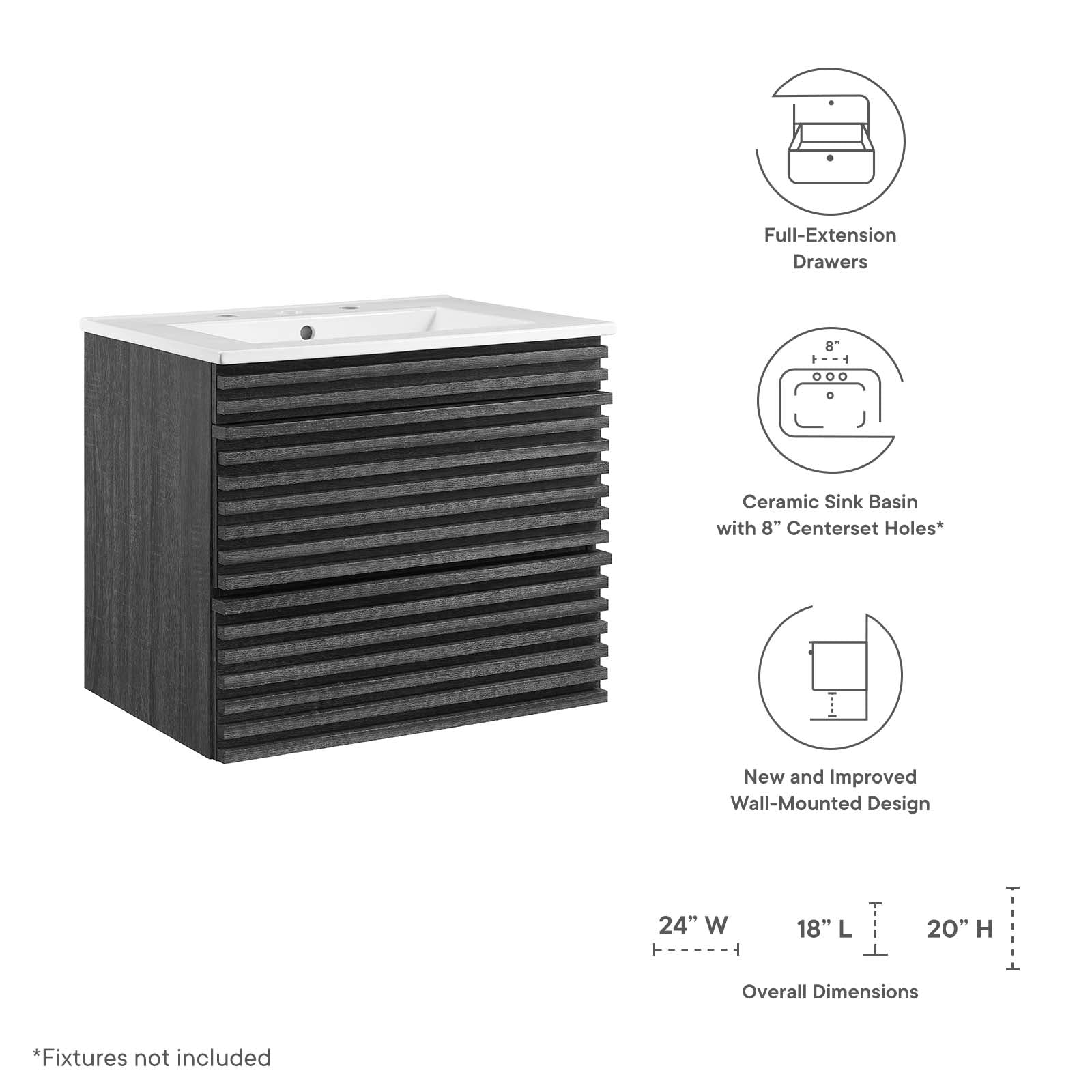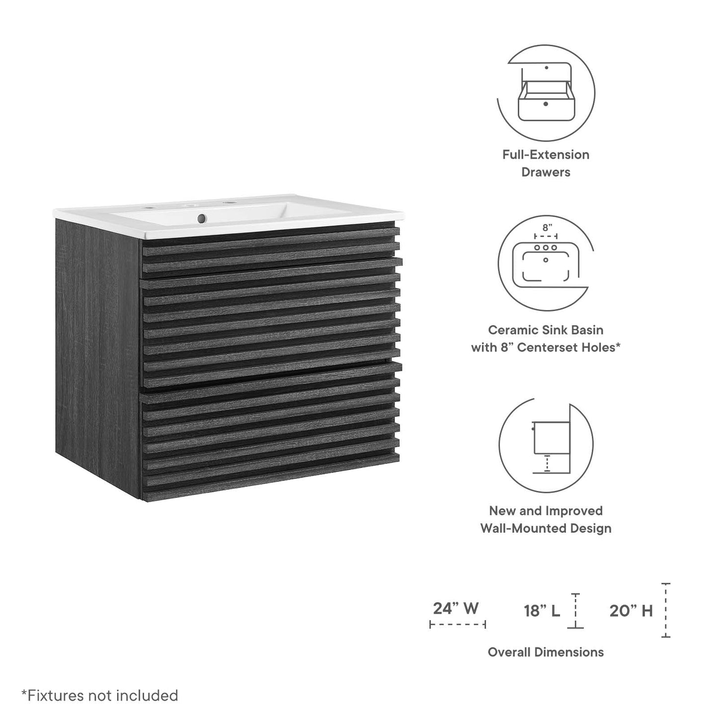 Set Includes: One - Render 24" Wall-Mount Bathroom Vanity