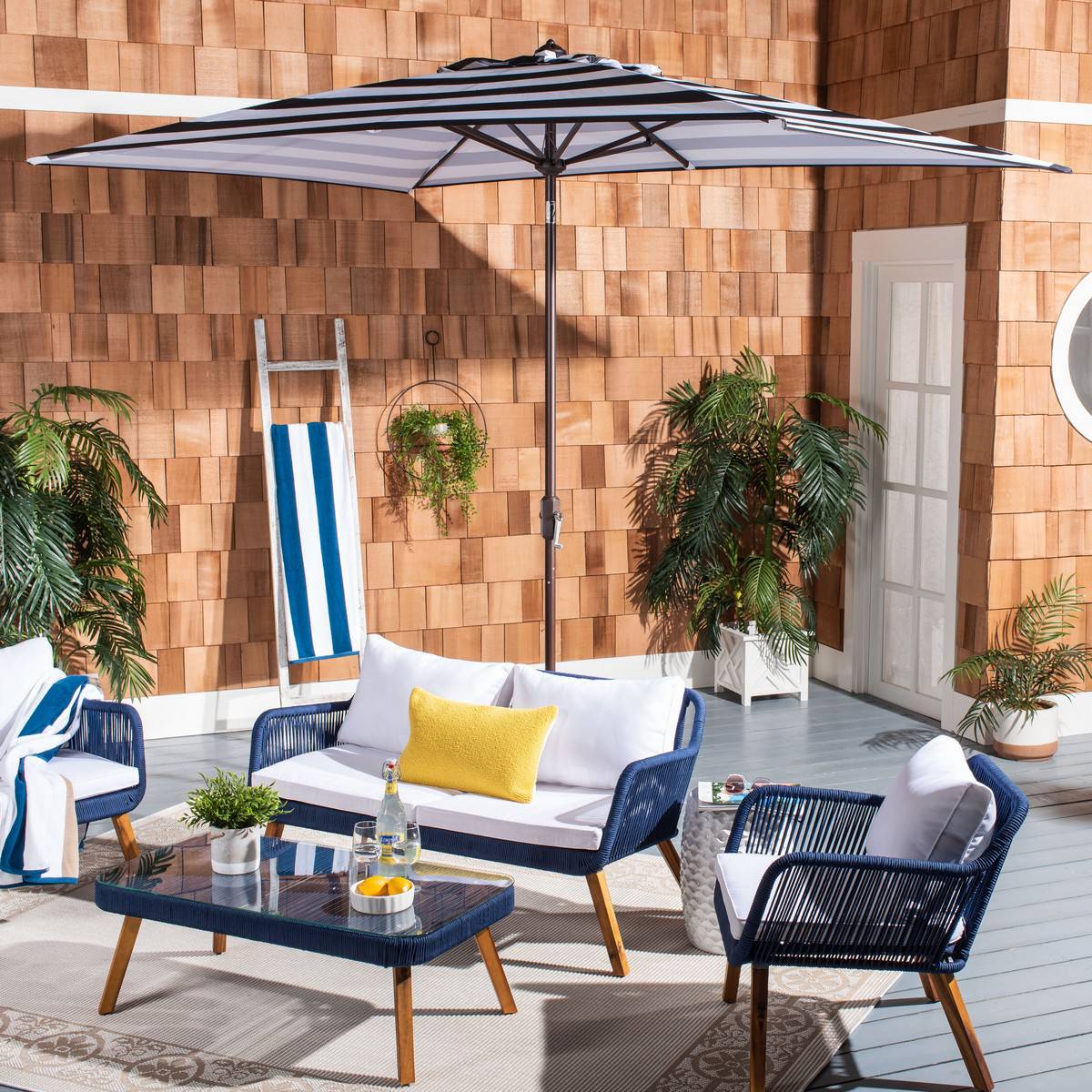 Inspired by the cosmopolitan Art Deco hotels in the heart of Miami Beach, this runway-ready market umbrella is absolutely fashion-fabulous. Its bold black and white stripes bring timeless style, and crisp clean lines and rectangular canopy make it contemporary open-air couture.