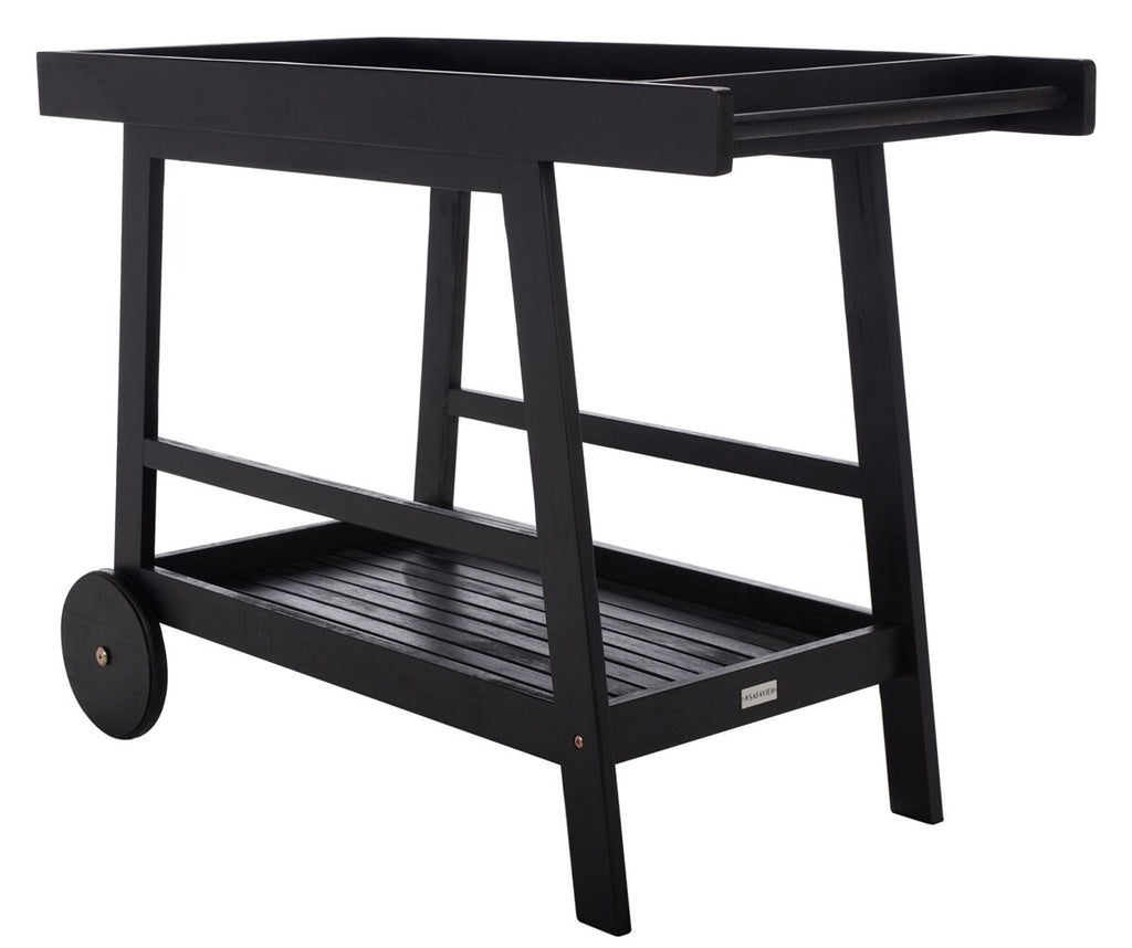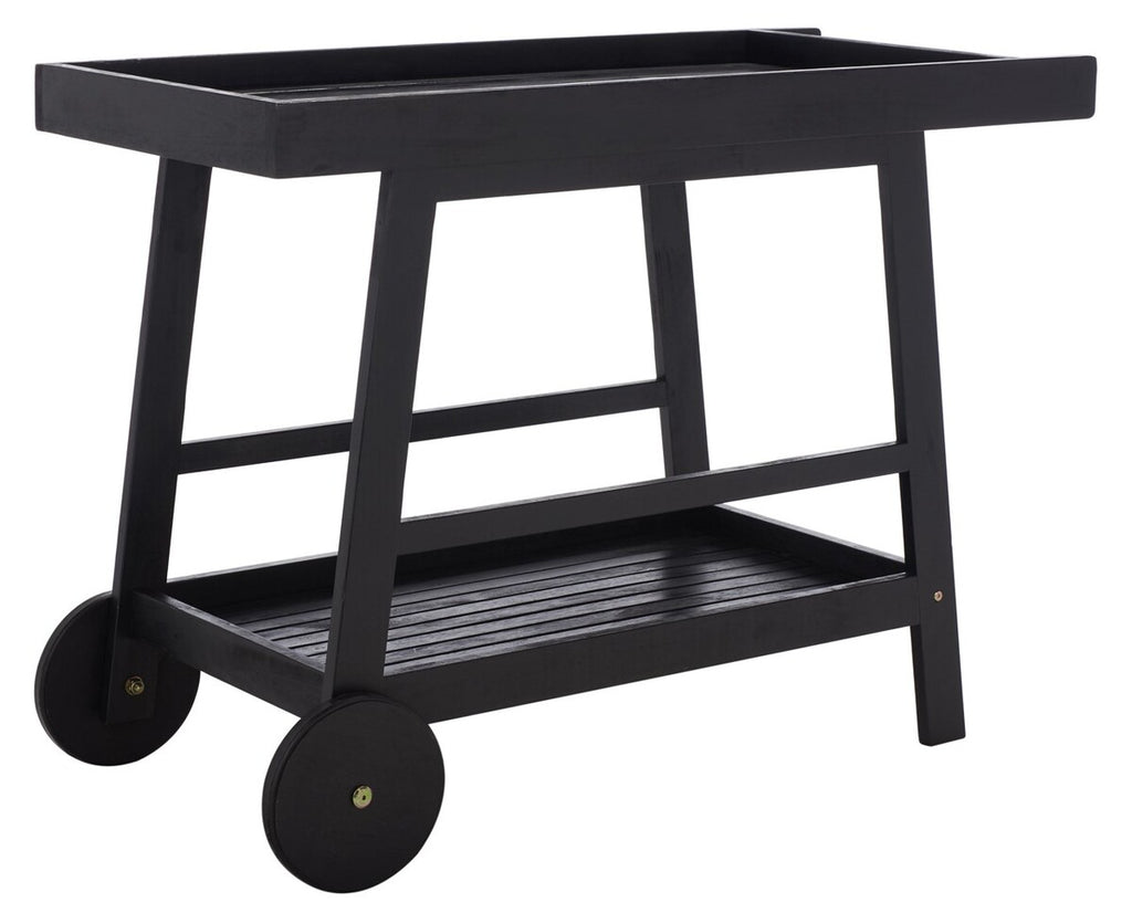 Designed for the modern host, this Renzo Indoor/Outdoor Bar Cart makes entertaining a breeze. Styled in a jet black finish, Renzo‰۪s eucalyptus wood makes it perfect for transporting cocktails and canapes from the kitchen to any outdoor oasis with strength and ease.