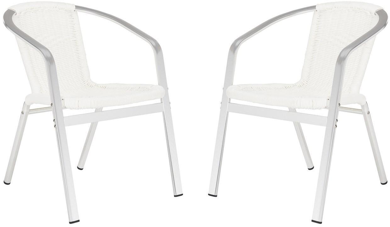 A modern iteration of the fan back chair, the white Wrangell indoor-outdoor stacking armchair by Safavieh is designed for parties in chic contemporary homes. Guests will love this comfortable chair, crafted of wicker and aluminum for enduring beauty, weather-resistance and easy care. Wrangell is sold in sets of two.