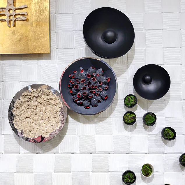 Textural and mysterious. Handcrafted of shell and stainless steel. Display with our accompanying 'Earth' Wall Art (see FG1354-9). Cleat included and hole in back allows item to pivot in any direction. Can also be used as a table sculpture. Indoor only.