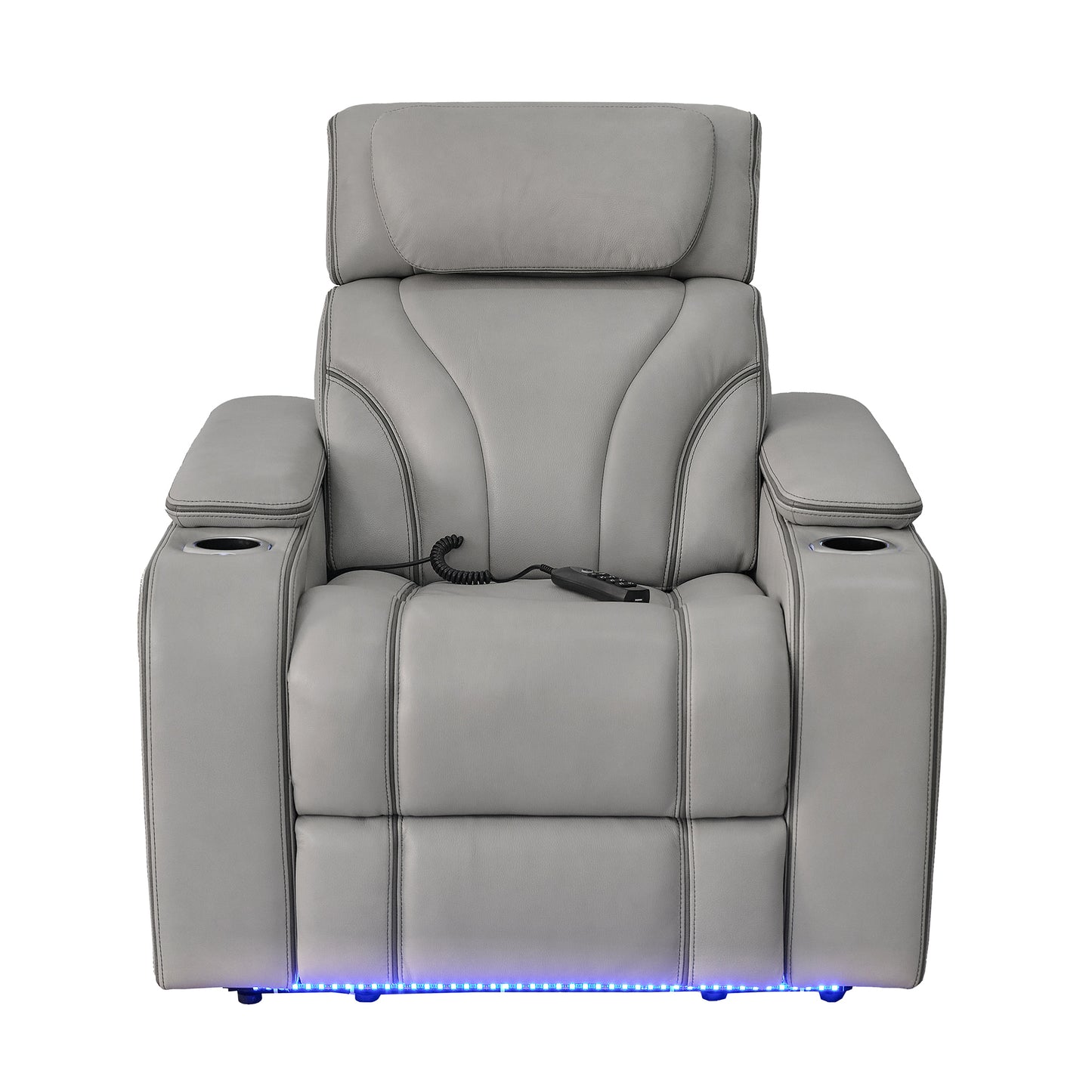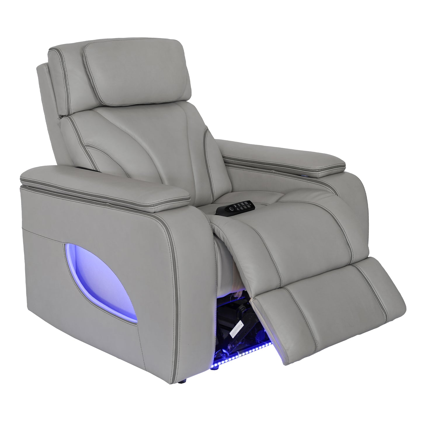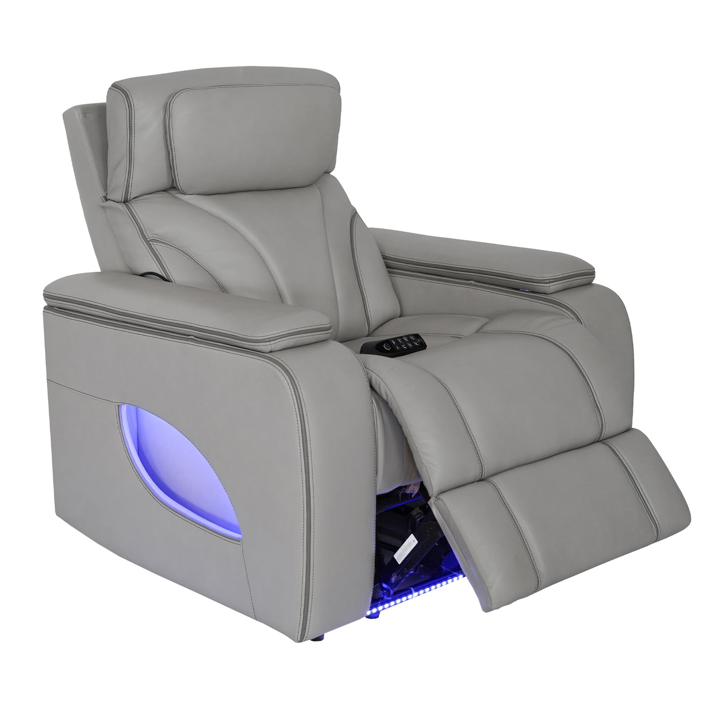 Octavia Zero Gravity Power Recliner with Heat and Massage in Silver and Gray Leather By Armen Living