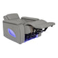Transform your living room with the Octavia Zero Gravity Recliner Sofa by Armen Living. This chair has everything: heating with an automatic shutoff, 3 modes of lumbar-focused air massage, power-raising headrest, electric reclining, and so much more! The Octavia is a modern recliner that is thoughtfully constructed with a sturdy steel and poplar wood frame, over 4.5-inches of high-density seat cushions, and durable leather match upholstery, meaning that all of the seats and arms you regularly touch are made with luxe top grain leather, while the sides and back utilize matching faux leather to maximize comfort and minimize maintenance. The recliner come with a corded remote wand with its own USB port that operates the reclining, 3-speed massage, and heating functions, as well as a home button that conveniently returns all functions to their off and closed state. Additionally, the ellipse cutouts on each side panel and the underside of this luxurious upholstered sofa are accented with soft blue LED lights to instantly add ambience to any room. The Octavia recliner was designed with stunning attention to detail, each arm is equipped with light-up cupholders and a plush armrest that slides forward to cover it while not in use, the adjustable headrests are extra-cushioned and allow you to enjoy any activity with ease, and the zero gravity reclining is achieves a neutral body position that positions your legs above your heart to promote blood circulation and relieve joint and muscle pain. The Octavia Power Recliner is not just a piece of furniture, it's a modern oasis that brings the comfort of a movie theater into your home.