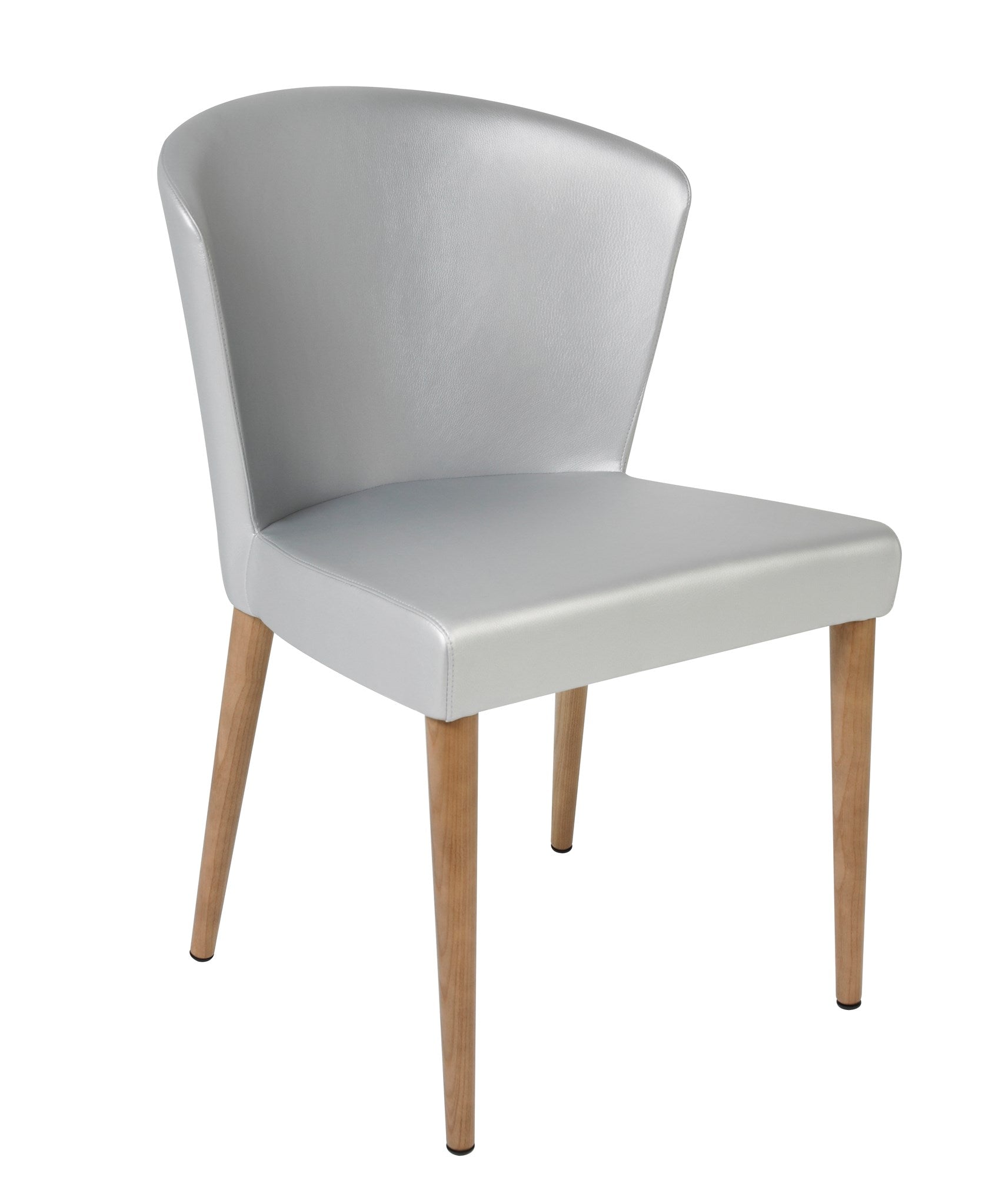Soft and inviting Ecopelle leather covers this chair made in Italy. Fashionable silver with oak legs.