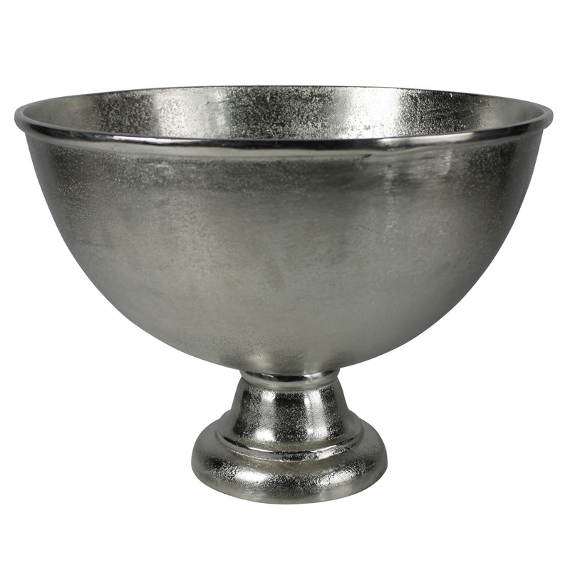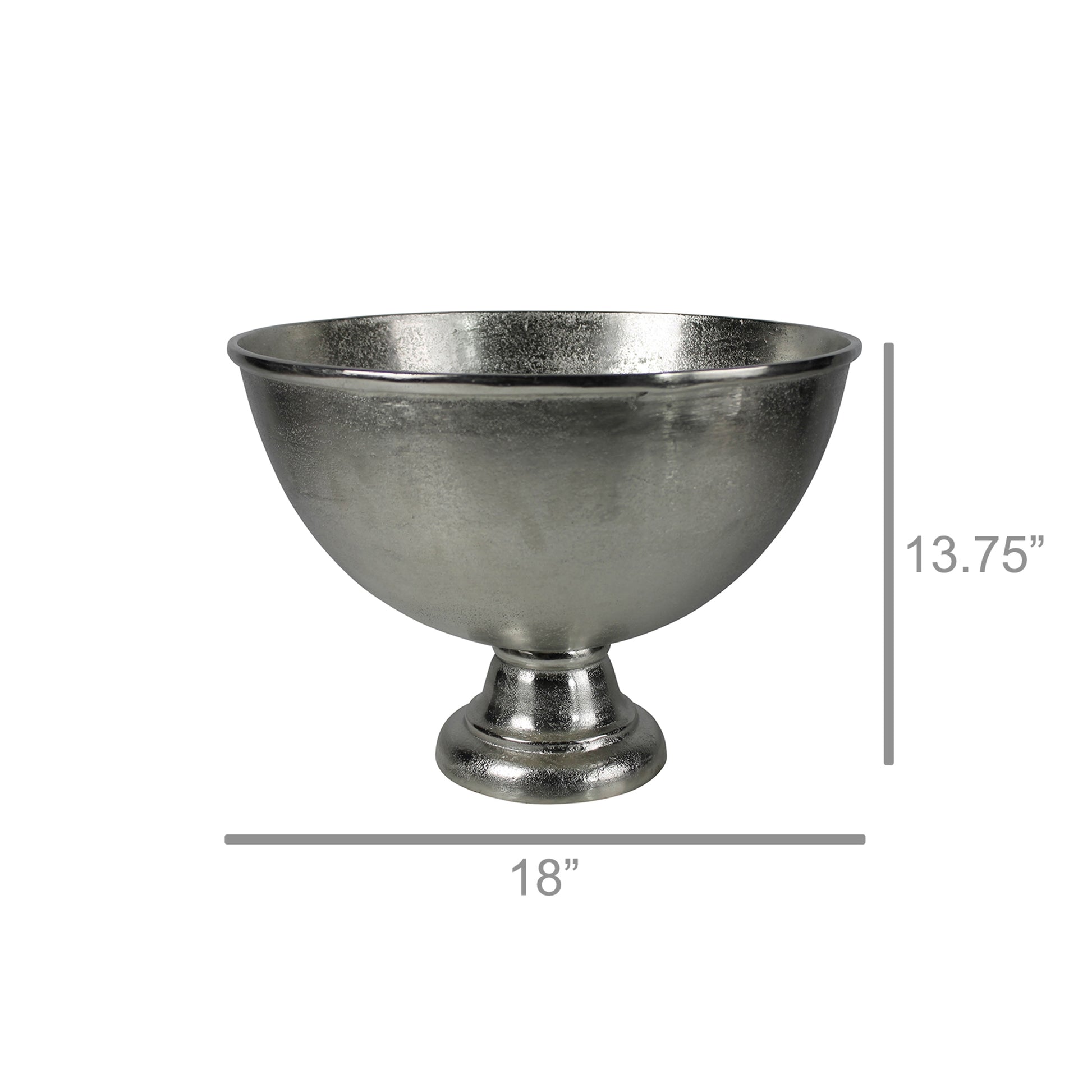 A classic shaped urn is given a modern turn. Divine if amassed with floral, delectable if filled with bottles of wine, the possibilities are truly endless. Cast of aluminum with a nickel finish. For decorative use only.