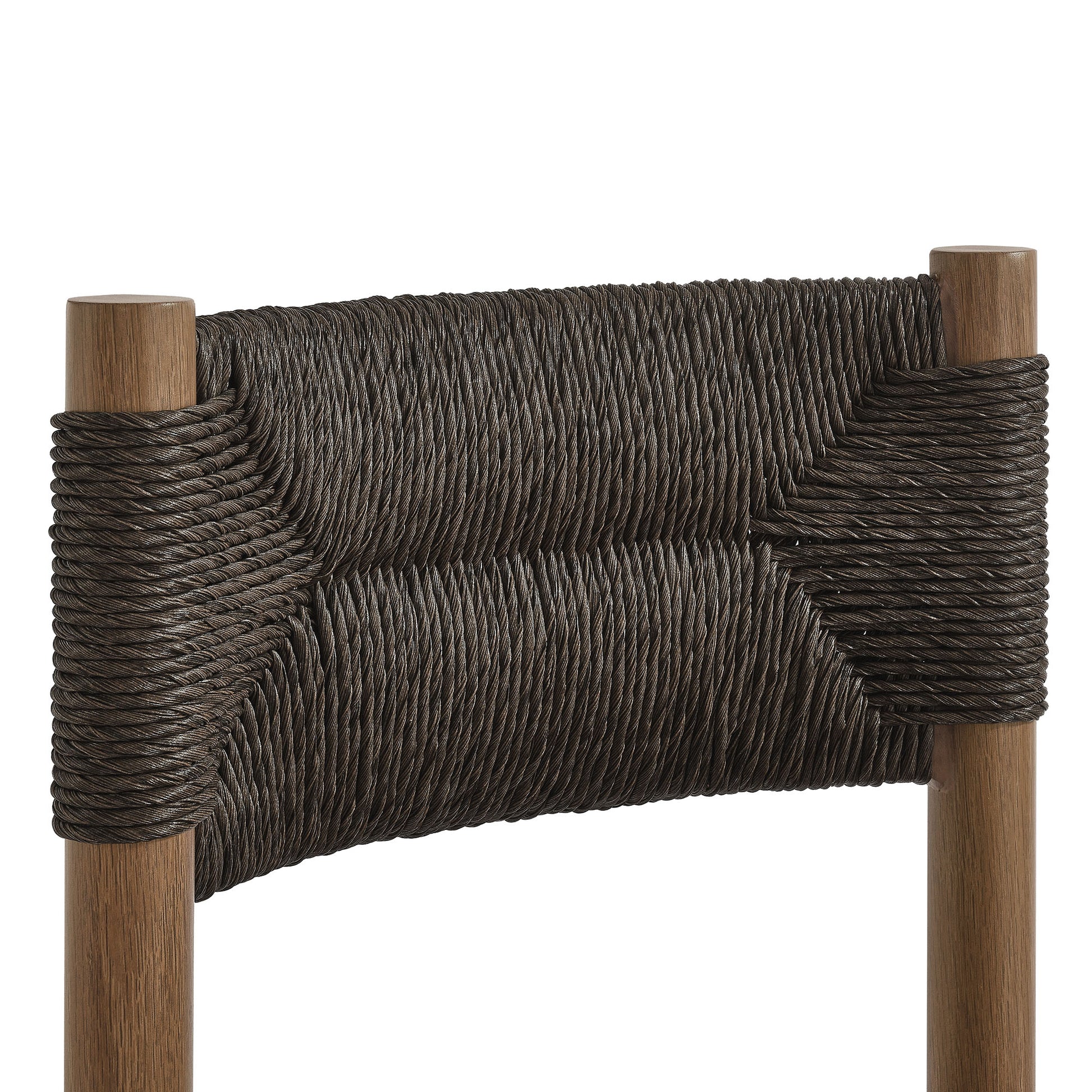Transform your patio into a stylish retreat with the stunning Parkland set of 2 outdoor wicker dining chairs. These rattan patio chairs seamlessly blend elegance and durability, featuring an aluminum frame with a chic wood grain design and a beautifully woven synthetic rattan seat and backrest. The intricate pattern of the rattan adds a touch of sophistication to any outdoor setting, making these woven dining chairs perfect for both casual and formal gatherings. Designed to withstand the elements, these all-weather Parkland modern patio chairs come with black plastic glides to protect your flooring, ensuring they remain in pristine condition. The sturdy stretchers on the outdoor accent chair frame provide added detail and stability. Enjoy immediate comfort and convenience as these Parkland outdoor metal chairs arrive fully assembled, ready to elevate your outdoor dining experience. Weight Capacity: 300 lbs.
