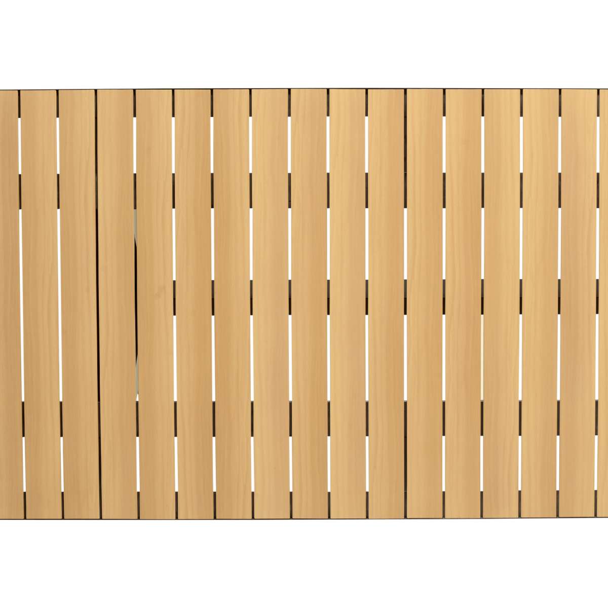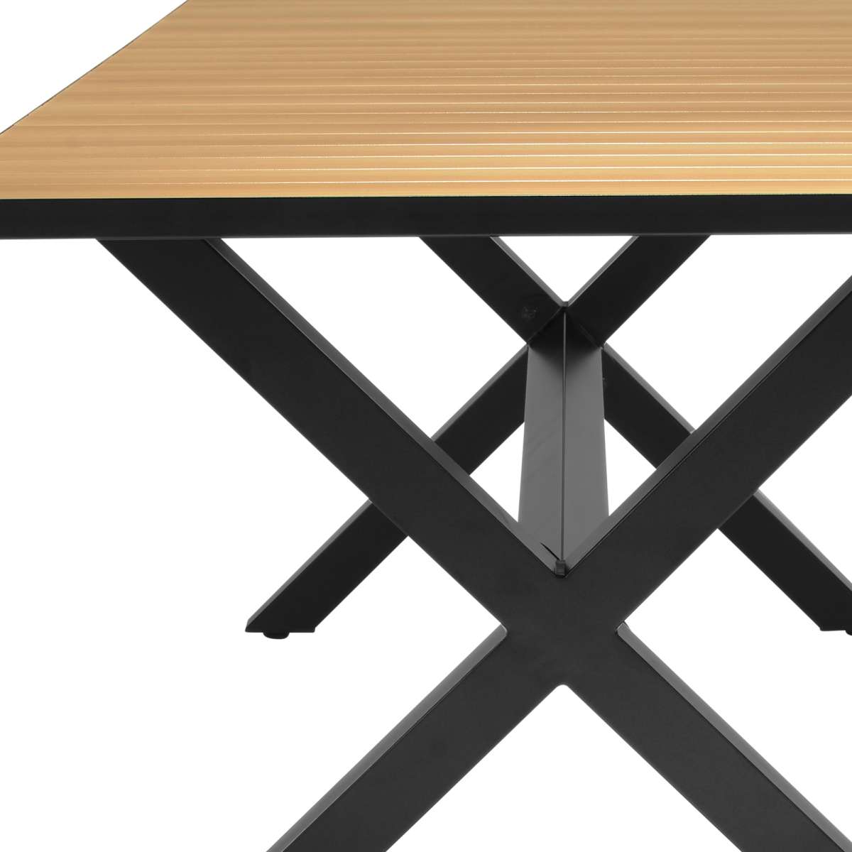 Bring in this quintessential piece of outdoor furniture with the Paseo Outdoor Black Aluminum Rectangular Dining Table from Armen Living. The black aluminum frame and tabletop are sturdy, strong, and stable - giving you the peace of mind that this table will last you for many years to come. The unique tabletop slats mimic wood but are a unique finish on the aluminum that gives off a warm and natural finish and lifts the design and details of the table but are easy to clean and naturally environmentally friendly as well as weather resistant. The wide tabletop is perfect for entertaining guests at your home. The cross legs make this a modern version of a traditional picnic table - where you get to mix and match the seating options! Pair this table with any of Armen Living's outdoor dining chairs for an eclectic feel! Product Dimensions: W:79 x D:35 x H:30
