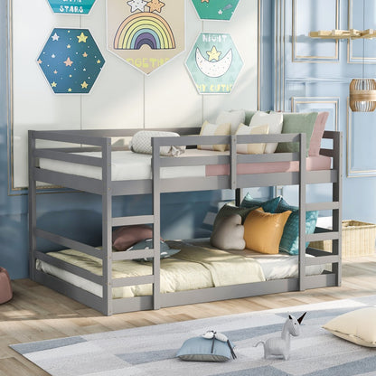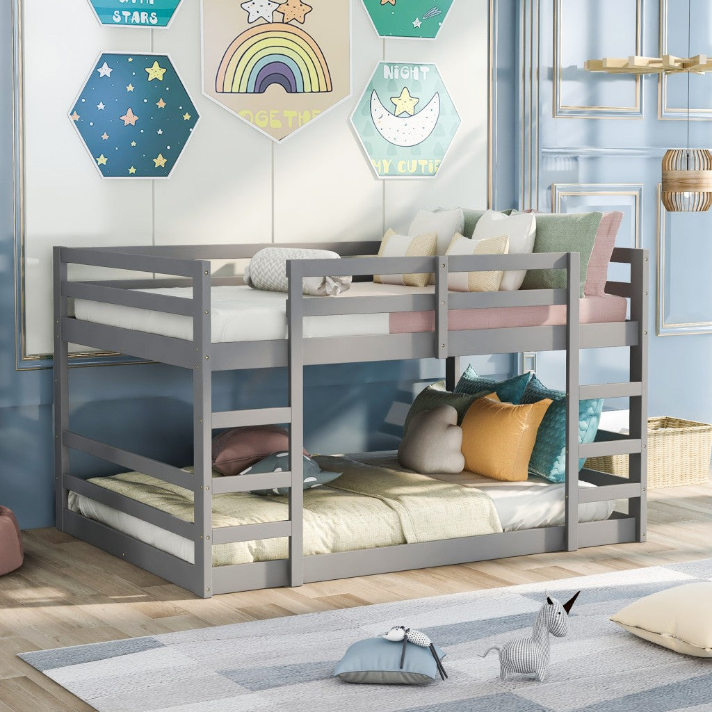 Subtle and compact, the Pastel Gray Full Over Full Dual Ladder Bunk Bed is a lovely choice for your small spaced home. Crafted from high qualit solid pine wood frame with commercial MDF board, this multi functional bed is authenticated to deliver stability and durability for a long period of time. Featuring a clean silhouette the bunk bed is equipped with wooden slats that can sustain your mattress and maintain it's function without the need of box springs. A full length guardrail surrounds the entire upper loft ensuring top notch security, while two ladders are provided on either side for multiple options to get in and out of bed. Owing it's stylish look with clean lines the design promotes comfort and a dash of elegance which invariably enhances the look of any bedroom. 48" x 58" x 77"