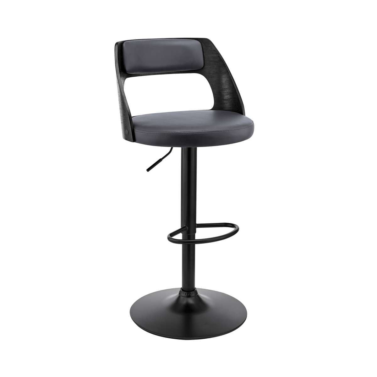 The Paulo Adjustable Swivel Cream Faux Leather and Black Wood Bar Stool with Black Base is the ideal addition to any home or apartment. The wide seat and ergonomic design are capable of keeping you comfortable and relaxed as long as you like. This stool combines mid-century aesthetics with a dash of retro chic glamour. The adjustable seat height functionality allows you to use this stool at your kitchen island, home bar, or peninsula without having to worry about the surface height. The convenient swivel function optimizes everyday use or entertaining, keeping everyone engaged regardless of their place in the room. The plush padded and high-density foam seat and back rest atop a strong pedestal base that creates a sturdy and comfortable seating experience. The Paulo is available in your choice of cream or black faux leather with walnut wood and a chrome base or cream or gray faux leather with black wood and a black base.