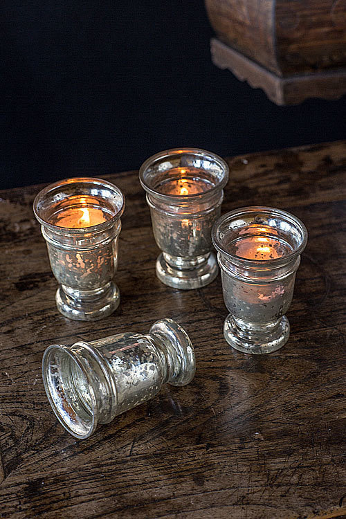 Vagabond Vintage Pedestal Candle Holder in Silver Finish - Set of 6