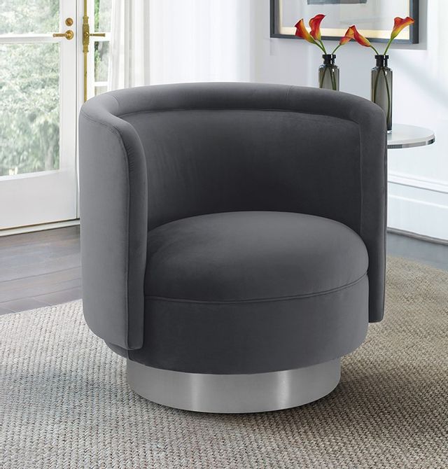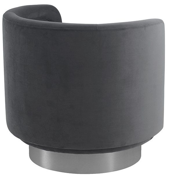 The wonderful Peony Chair from Armen Living is a visual spectacle. The rounded, high chair back encapsulates your body to make you feel comfortable and secure. The foam-padded seat cushion is plump and soft, making this your new favorite chair in the house to lounge in. The Peony has a very special feature that brings a swivel function to this already fantastically designed chair. Swivel in a full 360-degree motion for maximum mobility. The rich, thick gold brushed base is an eye-catching addition. The Peony is available in your color choice of Blush, Natural, and Gray.
