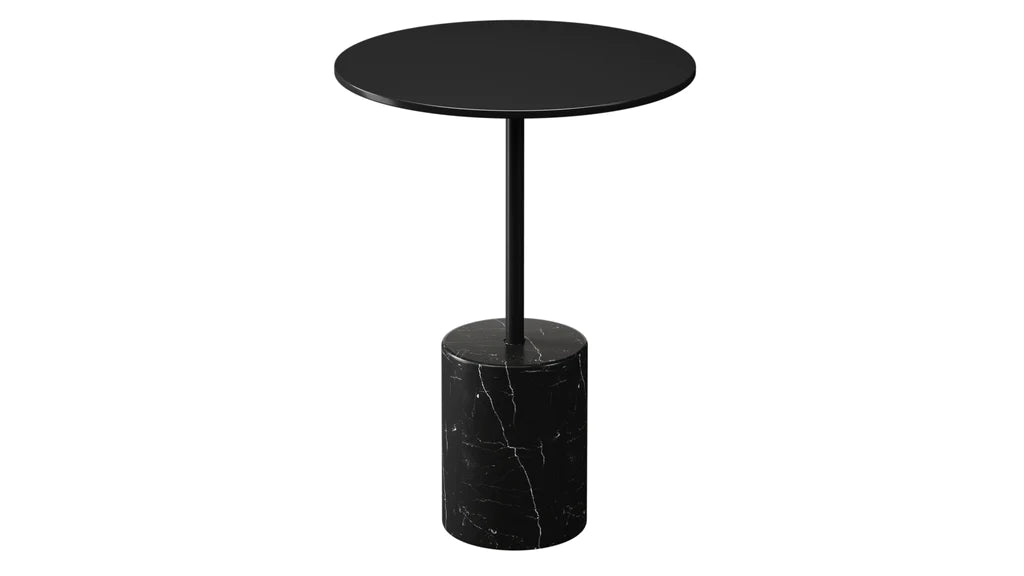 In the innovative sophisticated poke collection, materials are the key feature: the side table has two lives, two personalities, two materials, and two colors. It is a small table sculpture, with a marble base, and a powder-coated metal tubular column that develops into a round top. Available in two heights with or without a handle.