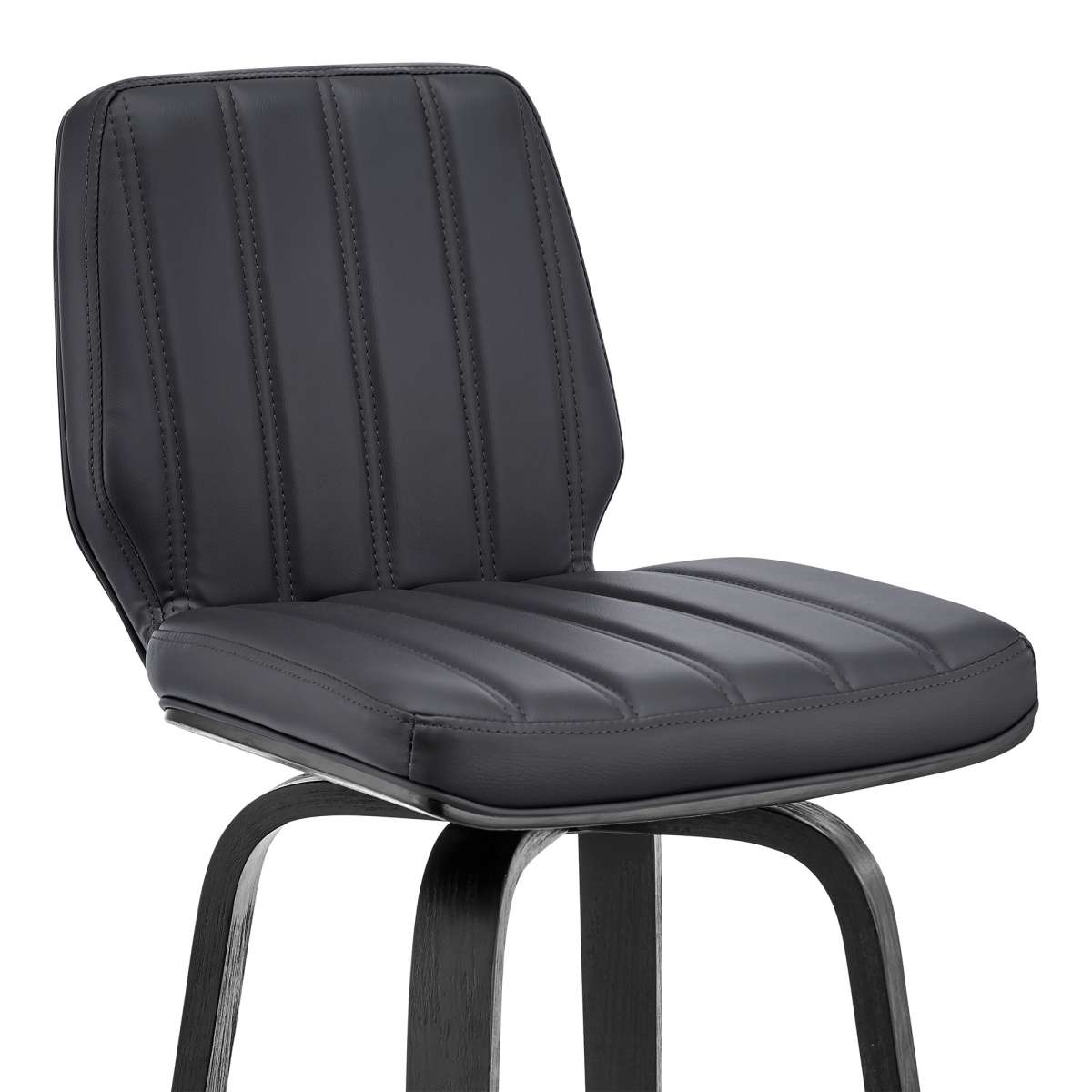 Renee 30" Swivel Grey Faux Leather and Black Wood Bar Stool By Armen Living