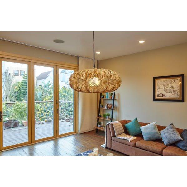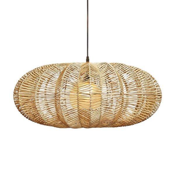 Instantly upgrade your space with this highly textured, handmade, natural pendant lamp made of seagrass. The basket-weave design, with a diffuser globe lets soft light through, bringing an organic, nautical feel to any space.
