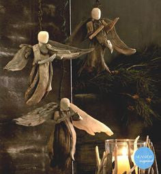 Add a natural element to your seasonal decorations with our driftwood angels made from recycled, repurposed or reclaimed material. One set includes three styles.