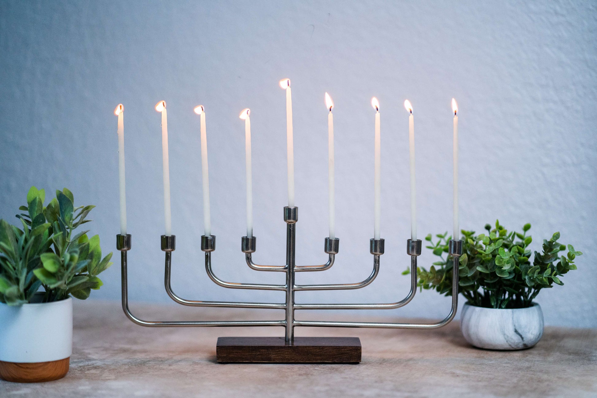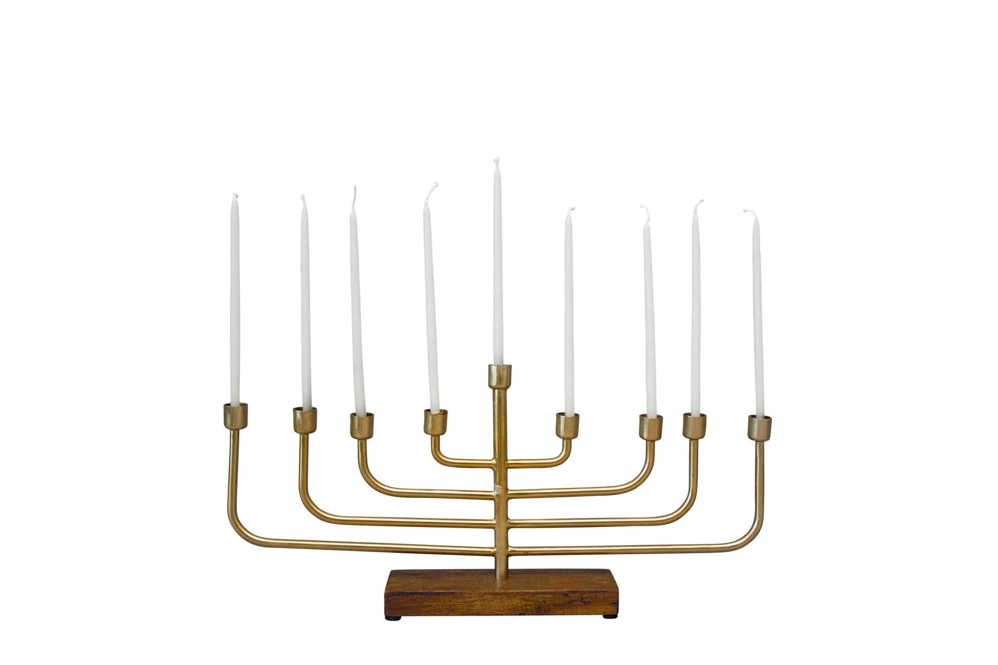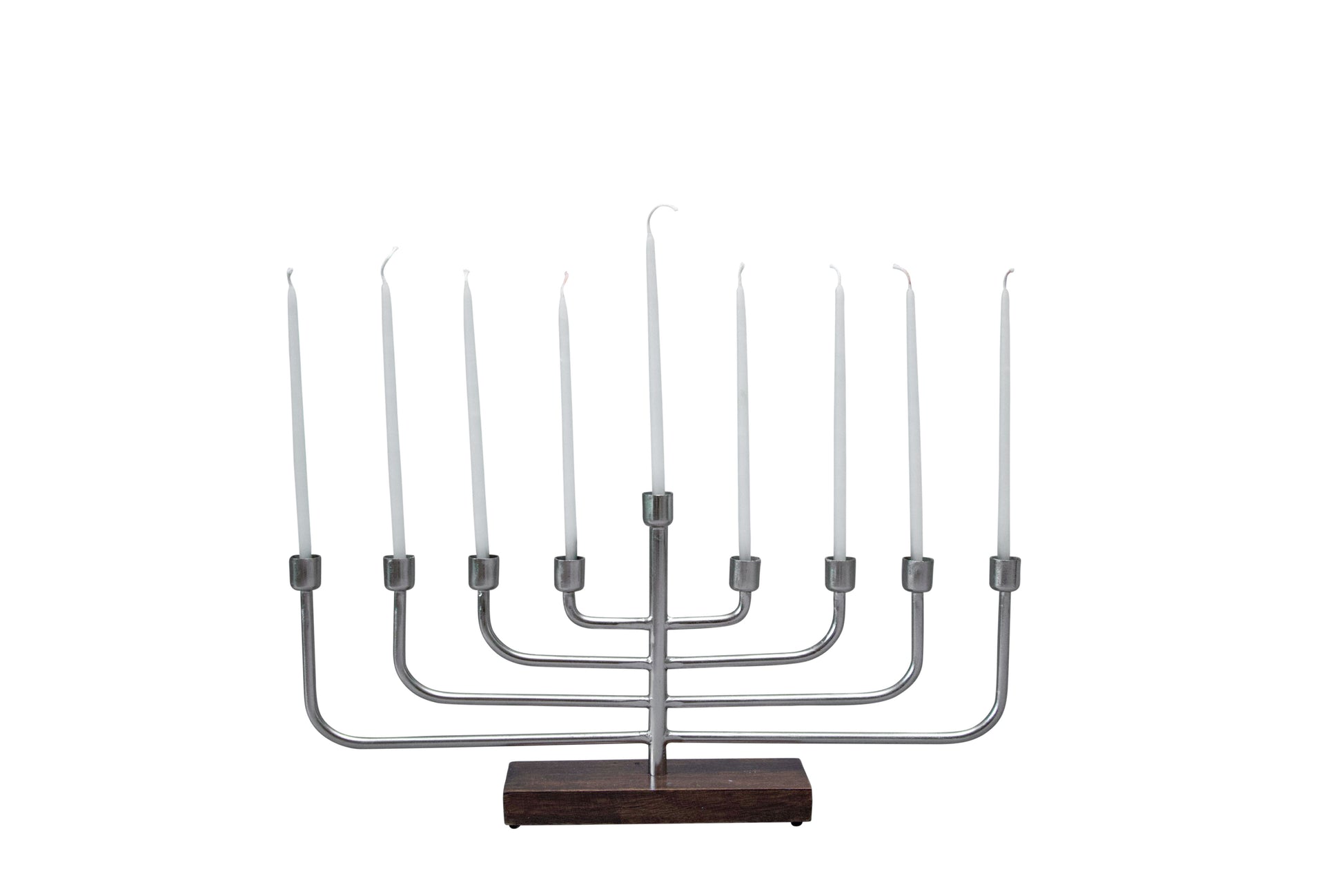 A Hanukkah Menorah, a nine-branched candelabrum perfect for use at Hanukkah to light a candle for the eight days of the holiday. This piece is sure to make a statement for the holidays and will be used throughout the years with the family. Masterfully designed, our metal menorah makes a beautiful addition to your home! Intricate and stunning, it features a graceful tree adorned with durable metal branches to accommodate nine candle sticks. With a diameter of approx 2 cm (0.8-inches), the cavities of our menorah aptly fits Hanukkah candles with a diameter of 0.5 inch. Available in Gold or Silver. Candles not included.