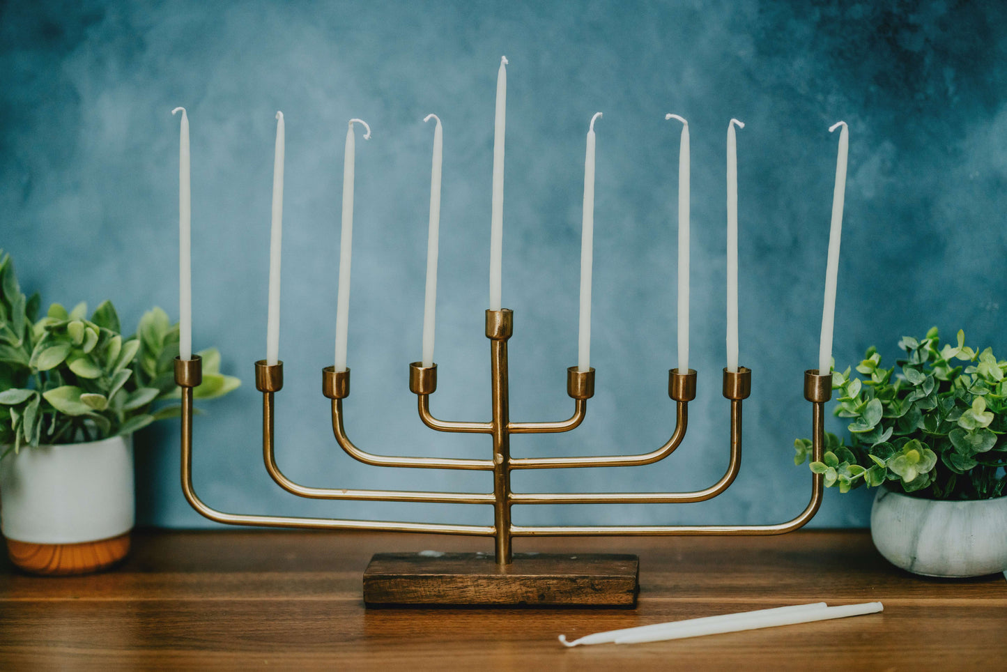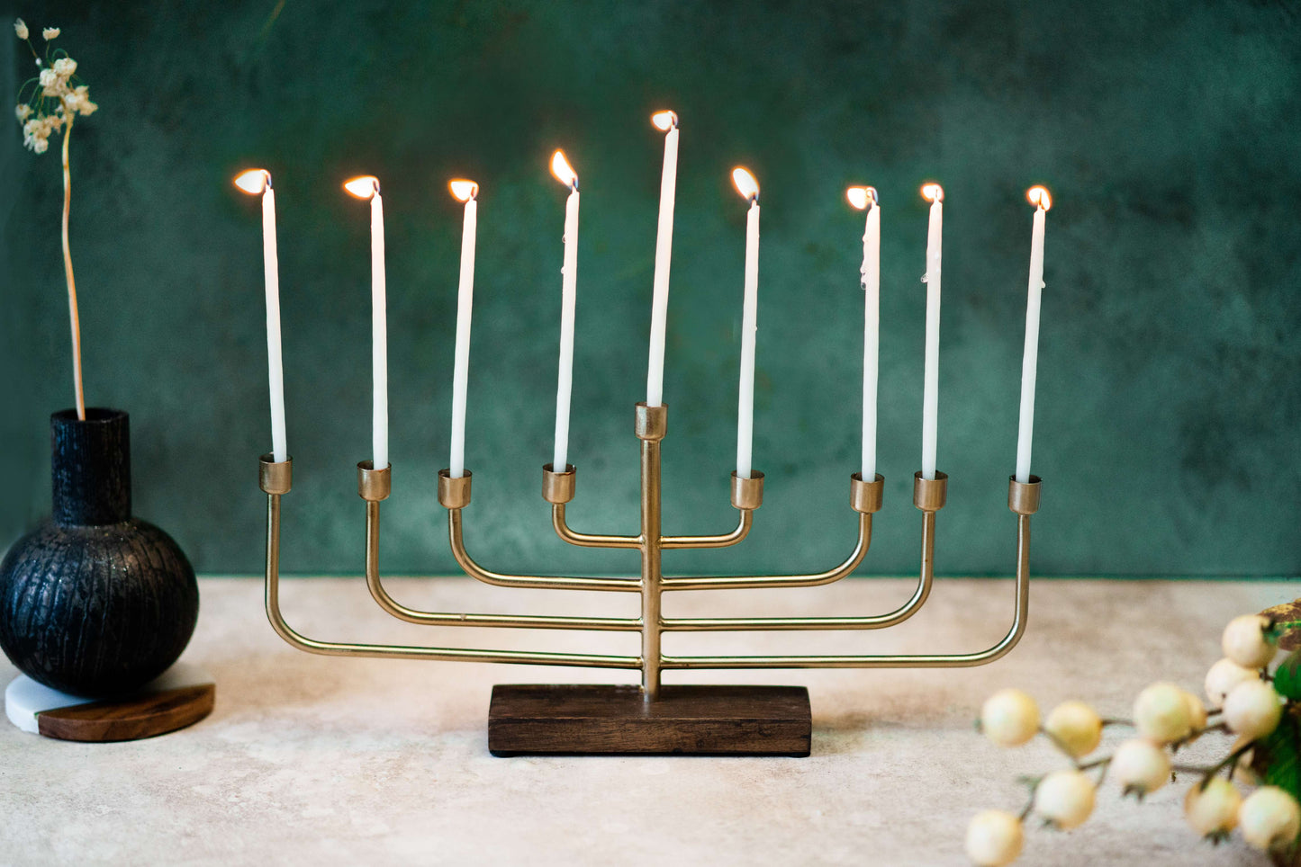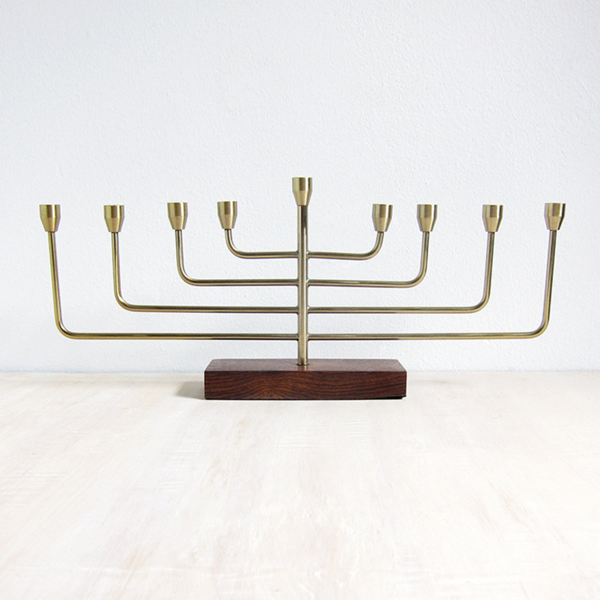 A Hanukkah Menorah, a nine-branched candelabrum perfect for use at Hanukkah to light a candle for the eight days of the holiday. This piece is sure to make a statement for the holidays and will be used throughout the years with the family. Masterfully designed, our metal menorah makes a beautiful addition to your home! Intricate and stunning, it features a graceful tree adorned with durable metal branches to accommodate nine candle sticks. With a diameter of approx 2 cm (0.8-inches), the cavities of our menorah aptly fits Hanukkah candles with a diameter of 0.5 inch. Available in Gold or Silver. Candles not included.