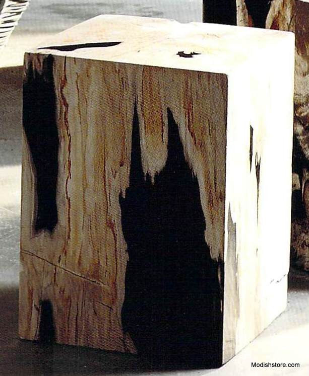 Over millions of years, minerals replace the organic material in submerged wood leaving the natural grain markings. Rectangular block stools are cut from million years old petrified wood and polished to retain the natural finish. The stools are naturally unique and will vary in dimension and color. Choose from predominantly black or cream coloration. Can be used for seating or as end table and side table. Color and size of the unique natural stools will vary. If placed in direct sunlight, color will fade over time.