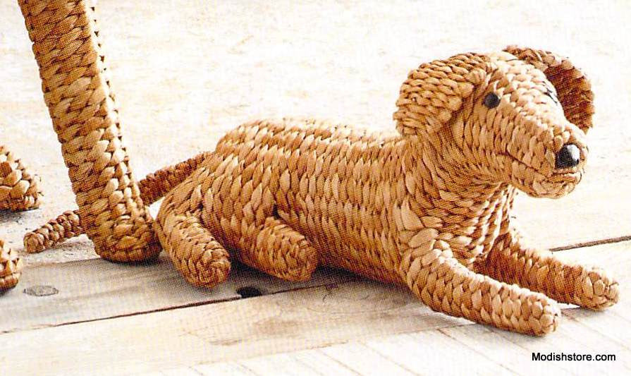 Add a little canine culture to your decor with our playful pups.Tightly woven by hand from natural sea grass and detailed with a black nose and button eyes for sweet personality. The set includes two puppies, one standing andone resting.