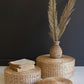 Elevate your decor or add some dimension to your bookshelves with these natural woven seagrass risers. This set of three can be used together to create a tiered effect, or separately for a different dimension. Give your planters or tchotchkes a little lift when you place them on these risers. A