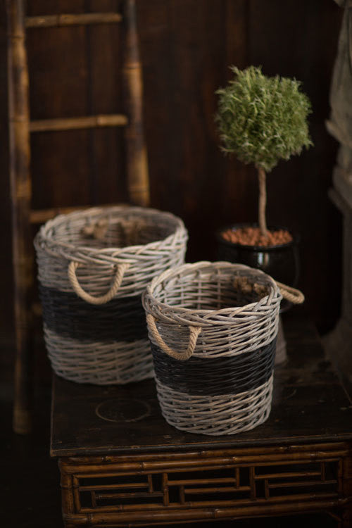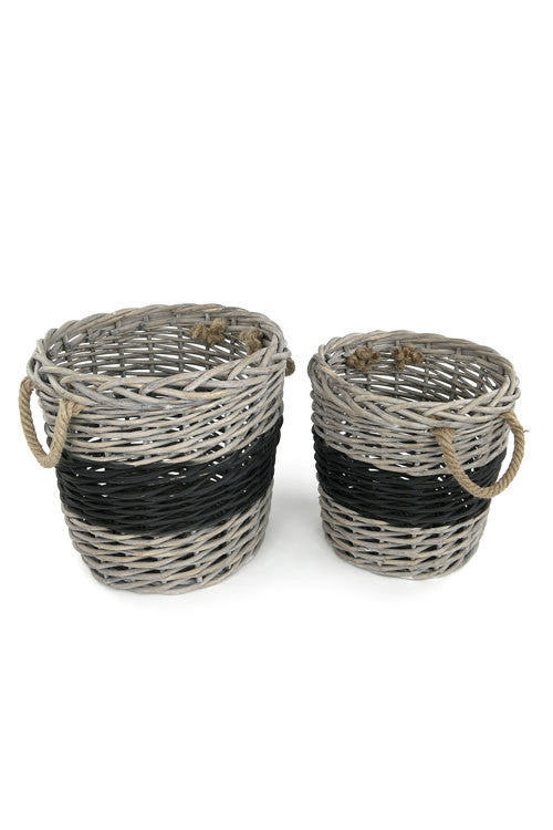 Vagabond Vintage Round Willow Baskets with Black Band - Set of 2