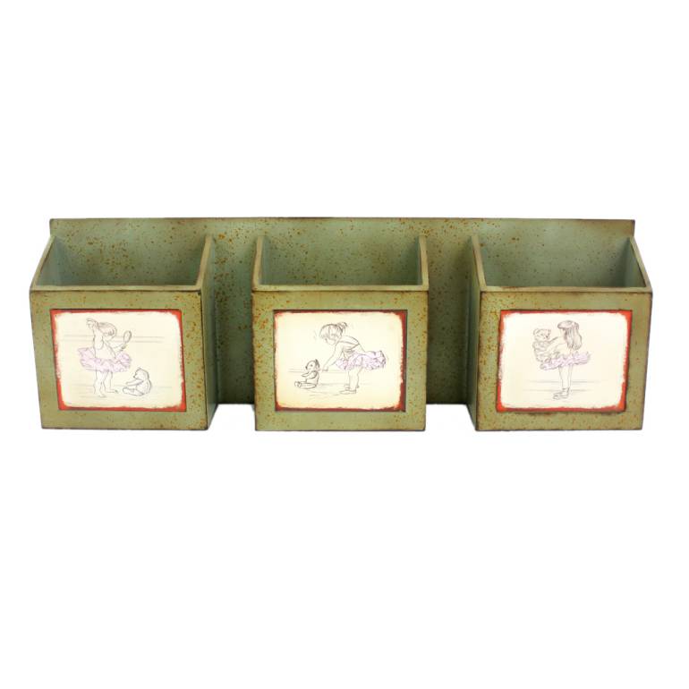 Arrange your magazines in a better way, with this wooden constructed wall organizer, featuring 3 box like slots with handcrafted pattern at its front. Incorporated with metal hooks for hanging horizontally, it has distressed rustic finish giving it an antique look.