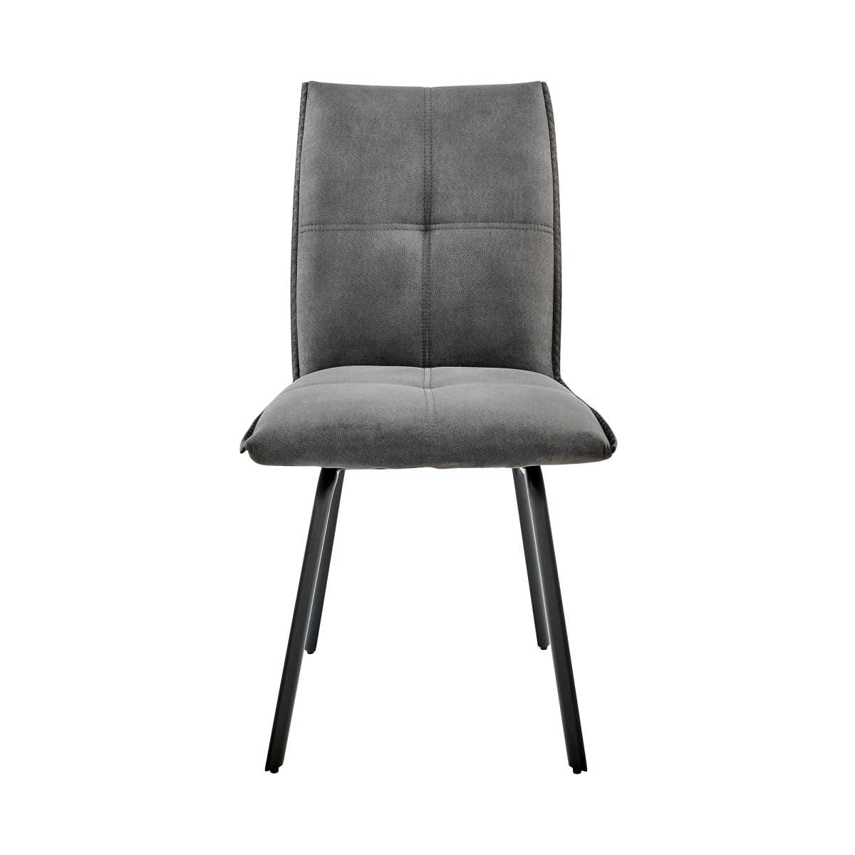 Bring the Rylee Dining Room Accent Chair in Charcoal Fabric and Black Finish - Set of 2 from Armen Living into your home! The fabric upholstery is luxuriously wrapped around the entire seat. Featuring a wide back and spacious seat, you never have to feel confined to a small space. The clean geometric upholstered lines add a textured look to this chair, covering the ultra-comfortable foam-padded cushion. The refined look of the Rylee will update the decor in any dining room, bar, or lounge area, or wherever you decide to place it! This wonderful chair features a sturdy metal frame that assures dependability and will give you years of enjoyment. The Rylee Dining Room Accent Chairs are available in your choice of Blue or Charcoal fabric upholstery and sold as a pair.