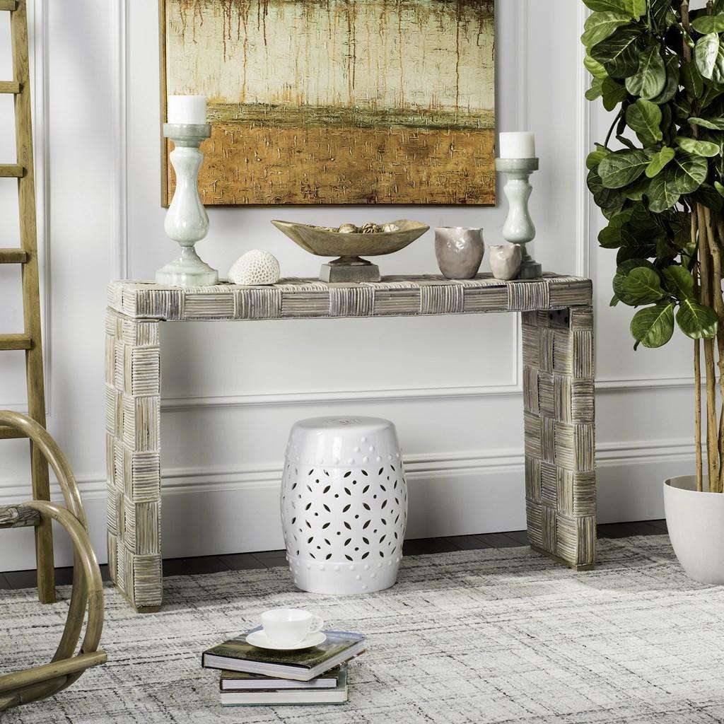 Inspired by the romantic ambiance of modern beachside living in South Africa, this contemporary rattan console brings designer style to any space. Crafted with the natural beauty of whitewashed kubu and black lacquered mango wood, it‰۪s a modern classic.