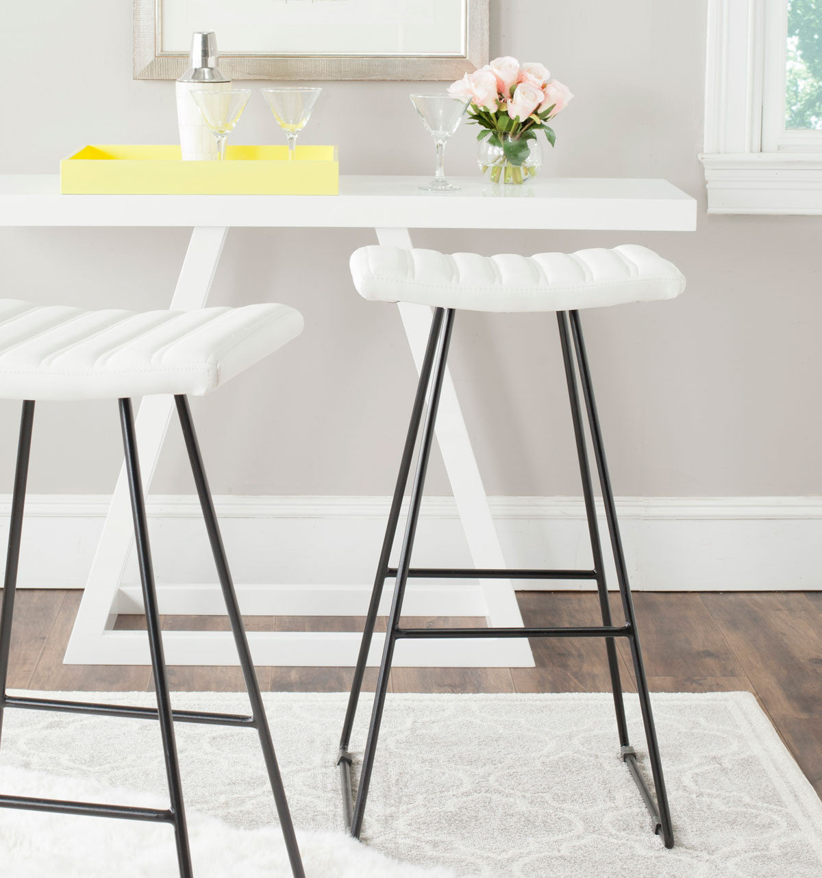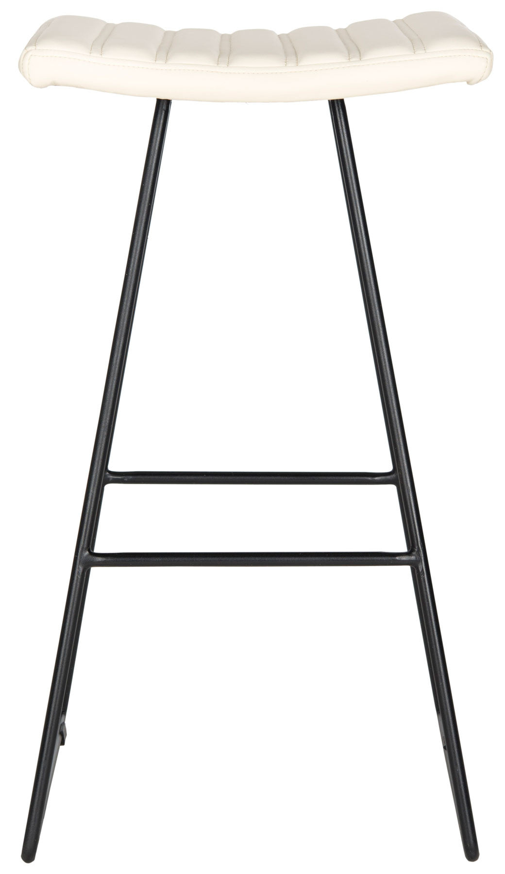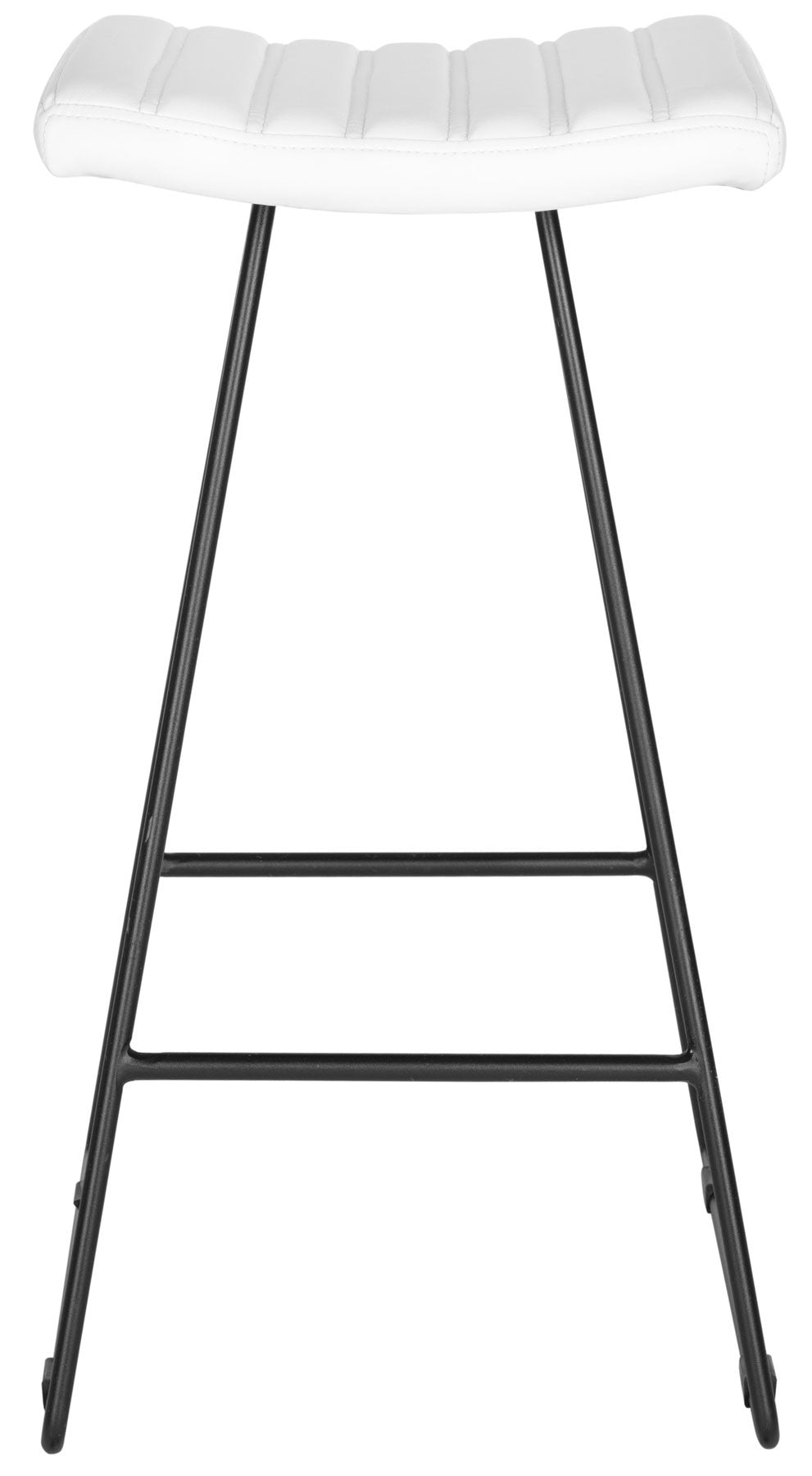 Raise the bar for style in the kitchen or family room with the airy look and clean silhouette of the Akito barstool. A comfy channel-quilted seat of white PU leather rests atop a whisper thin A-line frame of iron supported by sturdy crossbars.