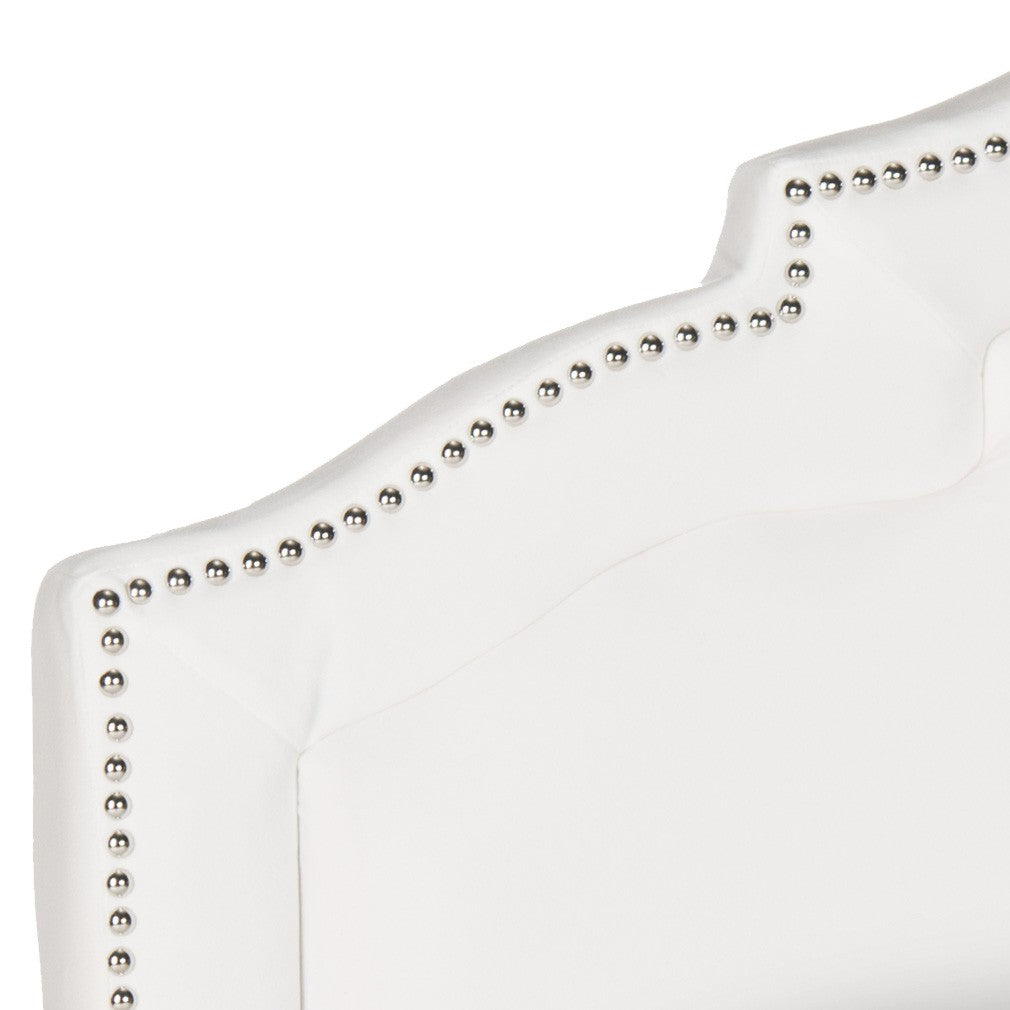 This Alexia Headboard brims with designer details that give it a glamorous French air. Luxuriously upholstered in plush white velvet, Alexia‰۪s stepped silhouette is accented by both a tufted border and silver nail head trim.
