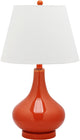 Reflect an aura of sophistication with the glimmering white Amy Gourd Glass Lamp with matching finial, base and neck. Complemented with an elegantly tapered pure cotton shade that illuminates the room.