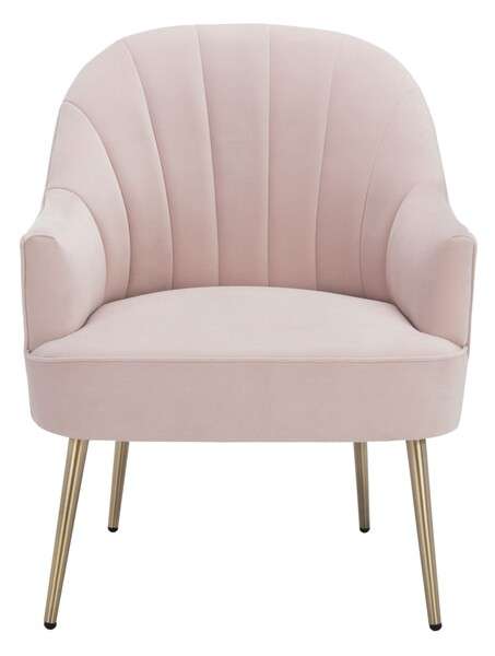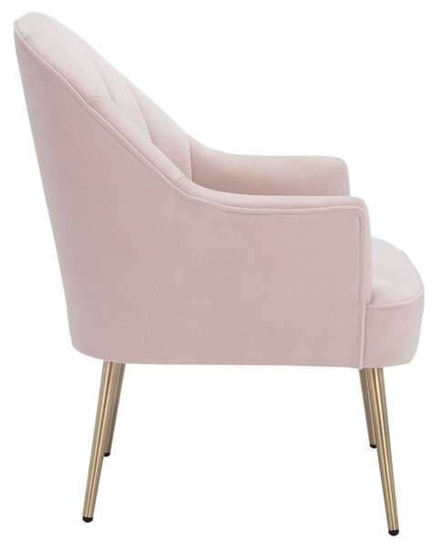 A vintage classic reimagined for today‰۪s chic interiors, this Areli Accent Chair is the epitome of elegance. Areli‰۪s Art Deco inspiration is beautifully displayed in channel-tufted light pink velvet that perfectly enhances its dramatically contoured silhouette, while tapered gold metal legs give a glimmering, glamorous touch.