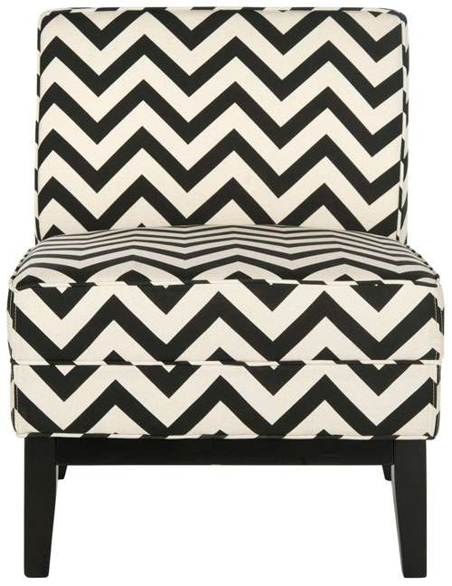 Styled for maximum impact in minimal space, the transitional Armand chair by Safavieh marries form and function. The chic black and white zigzag chevron motif is printed on a crisp blend of cotton and linen, and birch legs in dark brown finish add fashion flair. The Armand chair looks great in pairs in a conversation grouping, or use it alone in bedrooms or as a reading chair in the living room or family room.