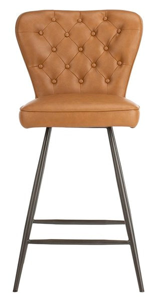 Safavieh Ashby 26"H Mid Century Modern Leather Tufted Swivel Counter Stool
