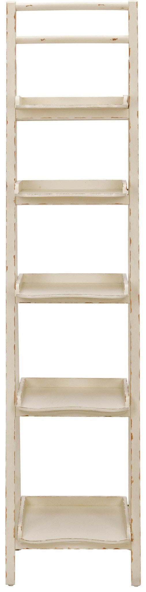 It's a tall order. But the Asher Leaning ‰ۡtagå¬re has eNugh backbone to get the job done. Crafted with pine wood in a beautiful distressed ivory finish, its multiple shelves and chic, casual style are perfect for displaying books, magazines, and all of life's modern accessories in the study, kitchen, or living room.