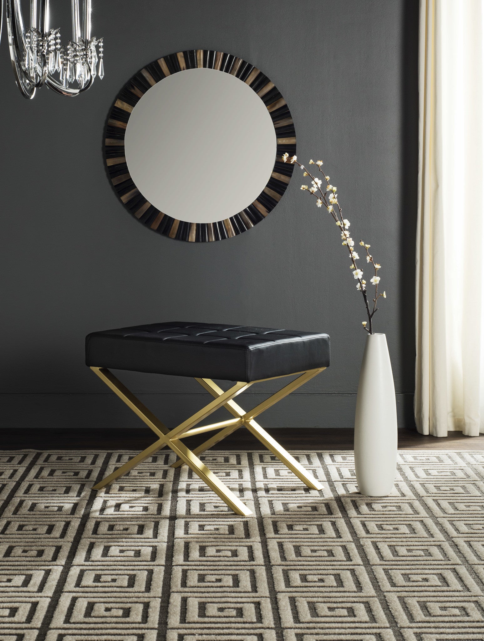 This ottoman was inspired by the warm, rich metallic tones seen at this year's Maison & Objet design show in Paris. Its luxurious gold painted finish and posh black PU upholstery instantly update traditional modernist decor.
