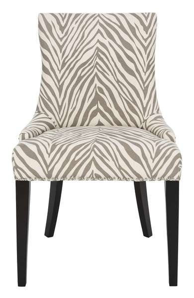 Safavieh Becca 19''H Grey/White Zebra Dining Chair - Silver Nail Heads - Ivory