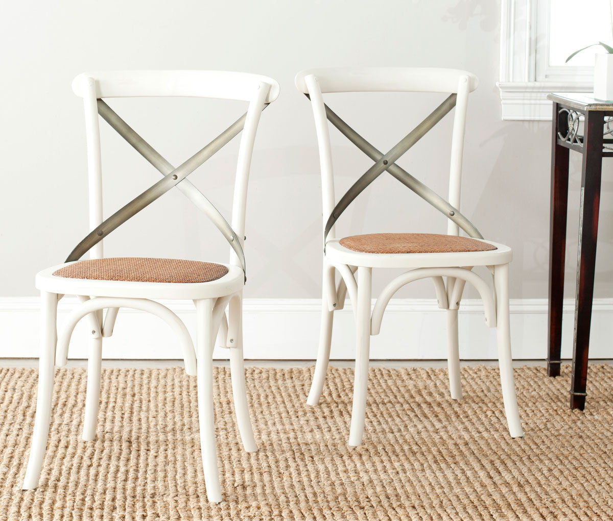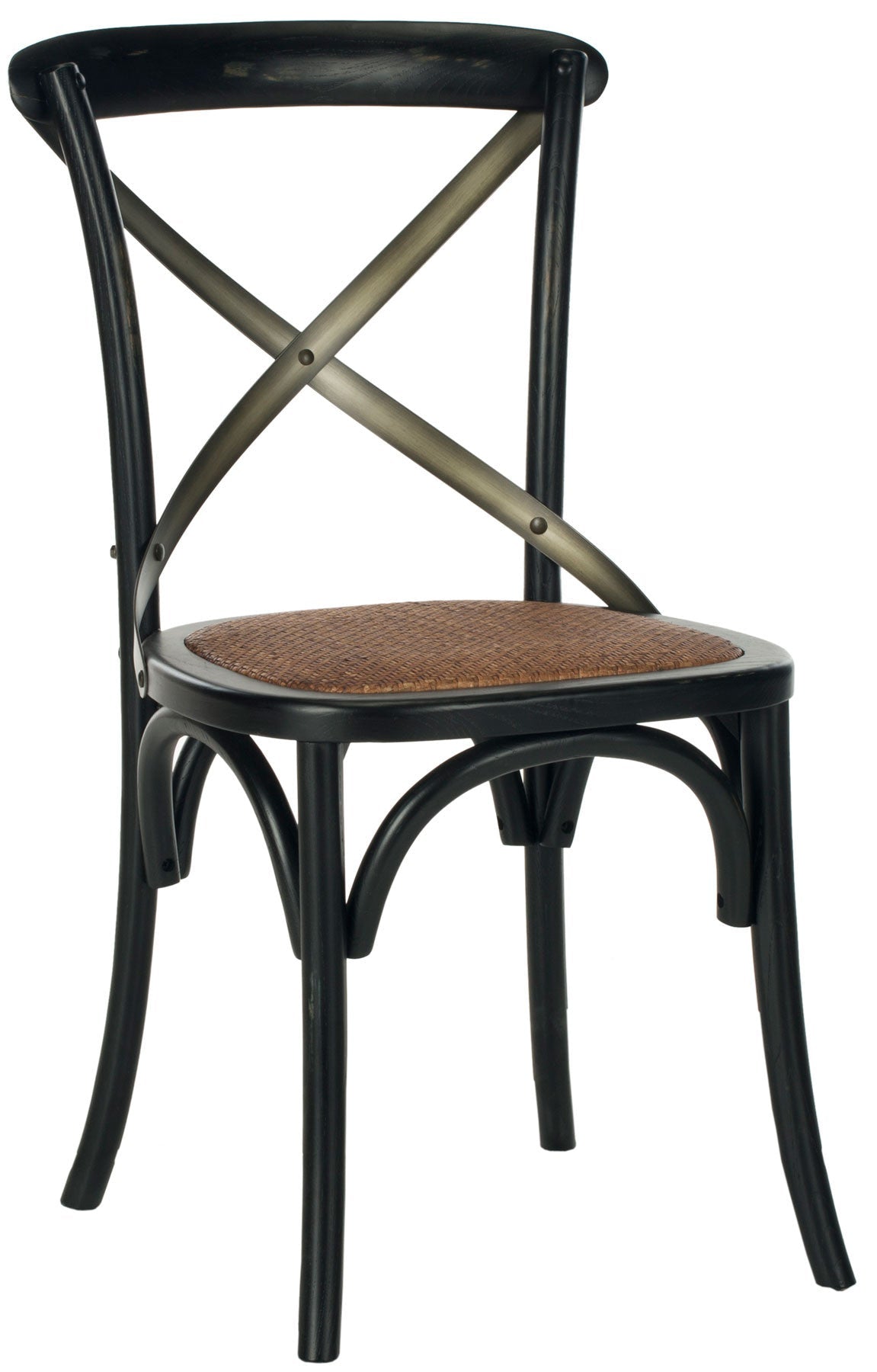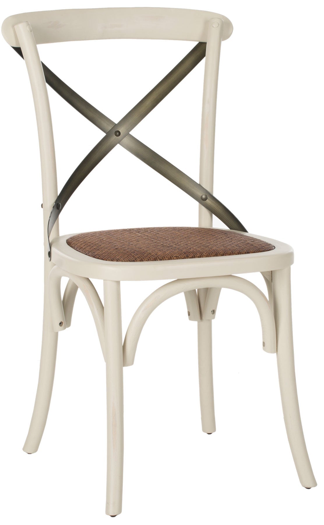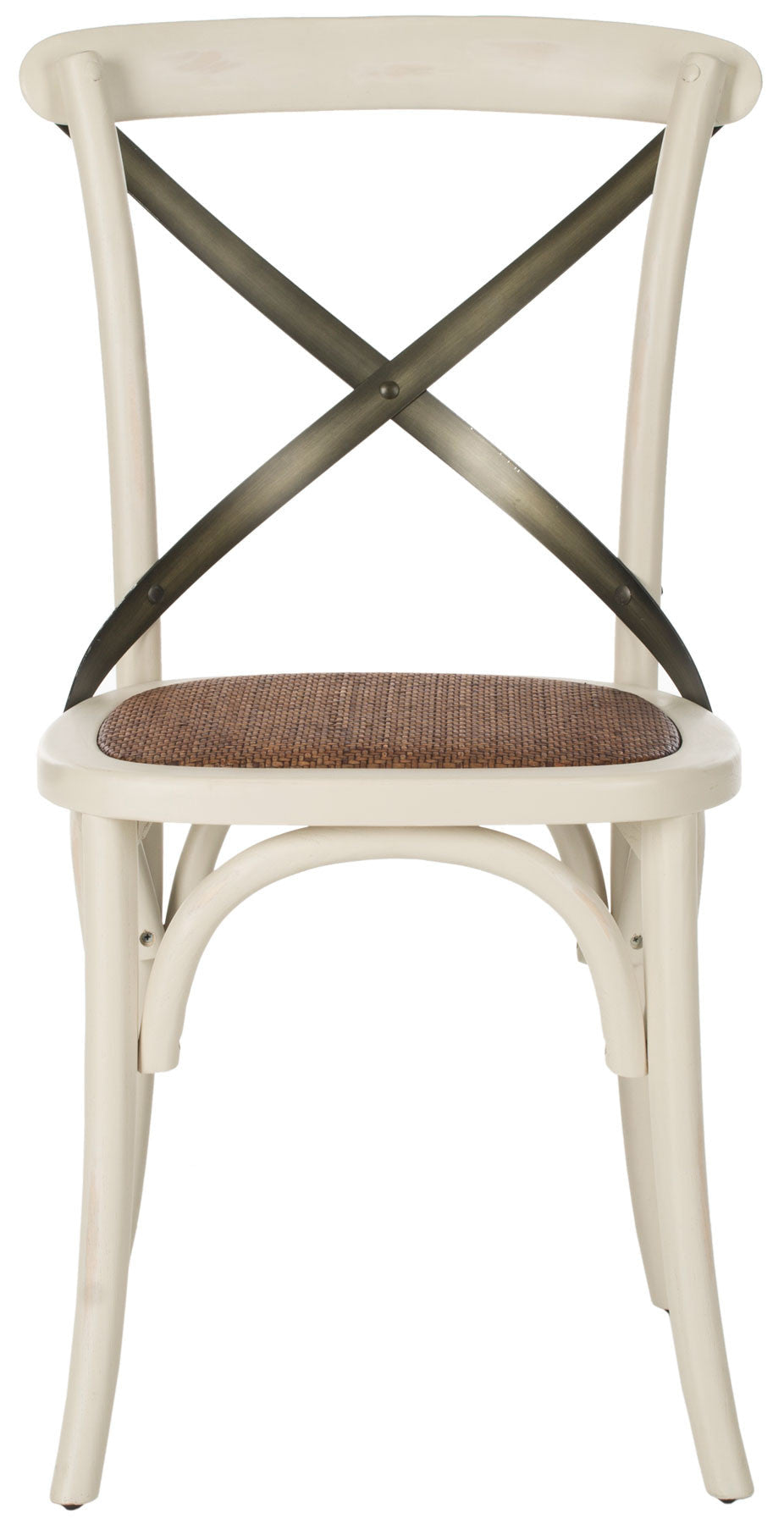 N chair is as famous as Thonet's bentwood cafå© model, and Safavieh's EleaNr X Back side chair pays homage to the beloved original. Your kitchen or dining room will conjure images of Vienna cafå© society with EleaNr's bent metal frame in ivory finish, rattan seat and authentic arch brace in black metal.
