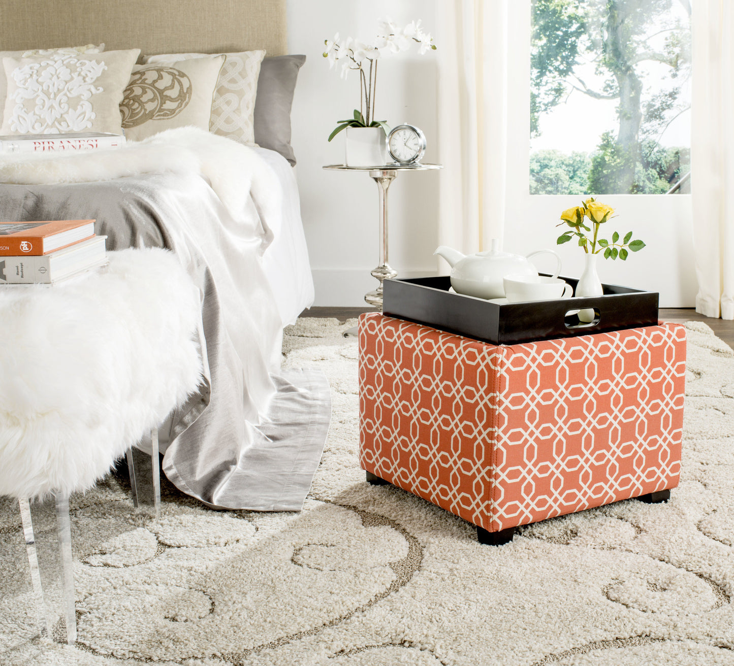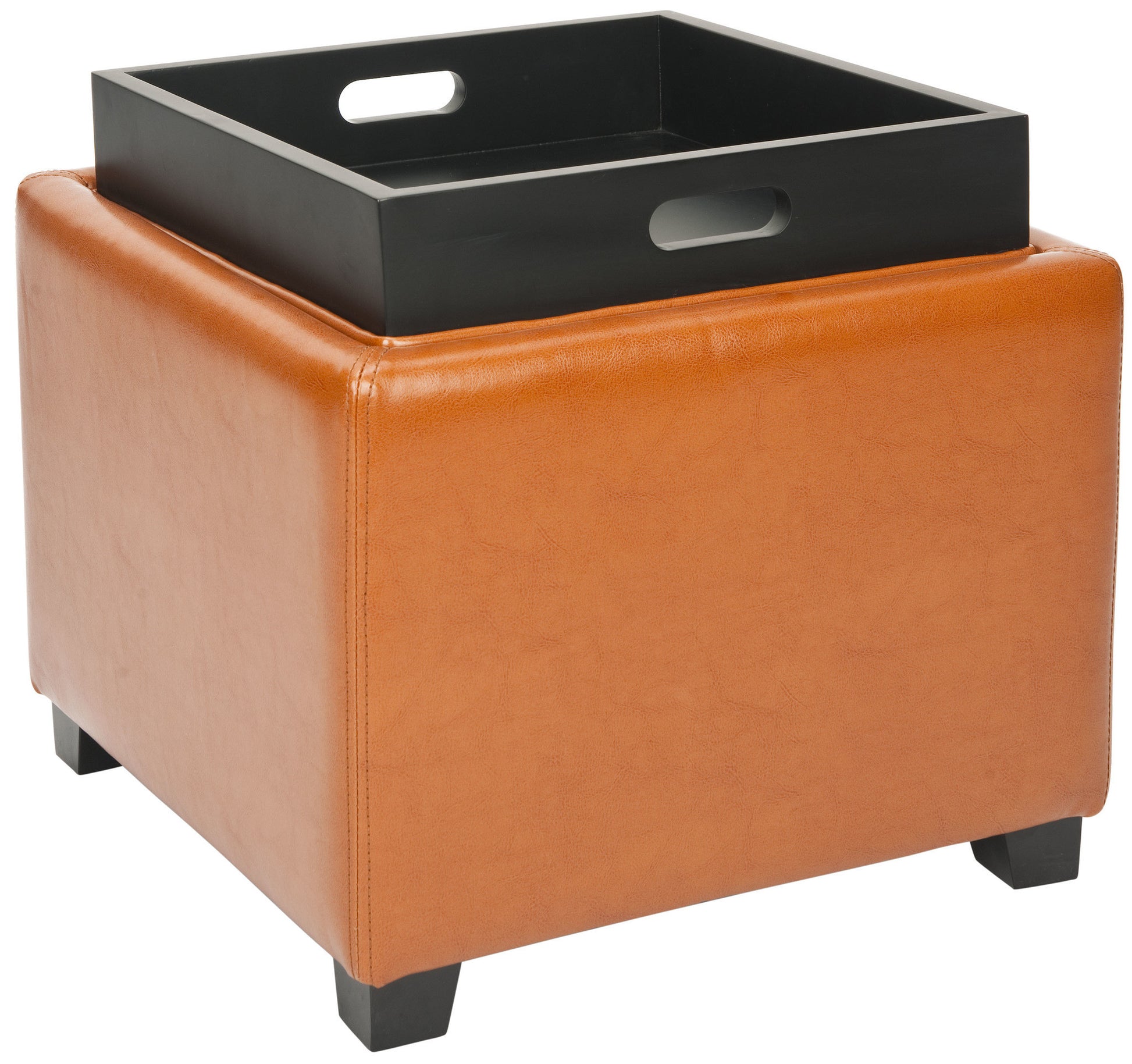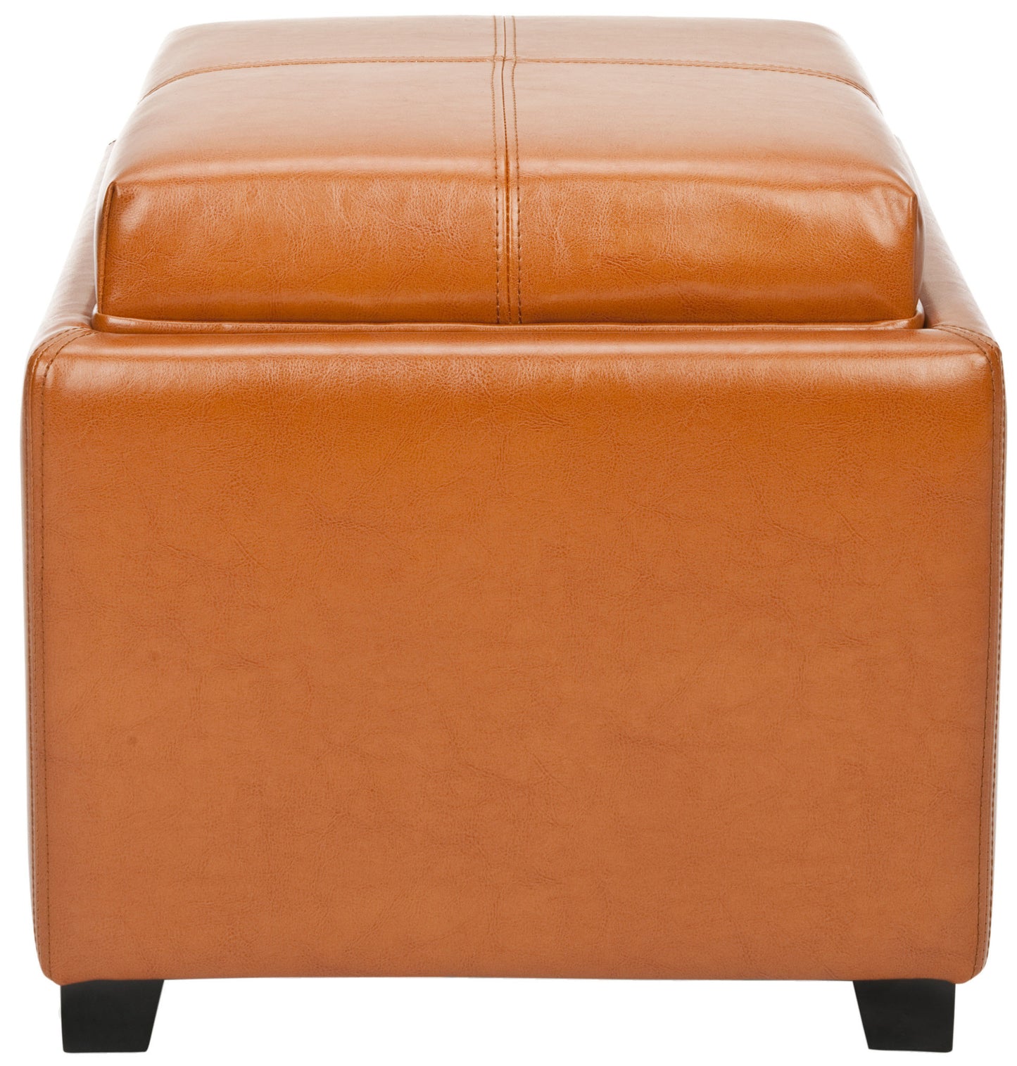 Serve it with style. In addition to offering extra seating and a place to hide life's disorganized treasures, the Harrison Single Tray Ottoman presents an ideal place for an unexpected tea for two. Crafted with black birch wood detailing and upholstered in brown bicast leather, this sleek little number feels at home in any modern interior.