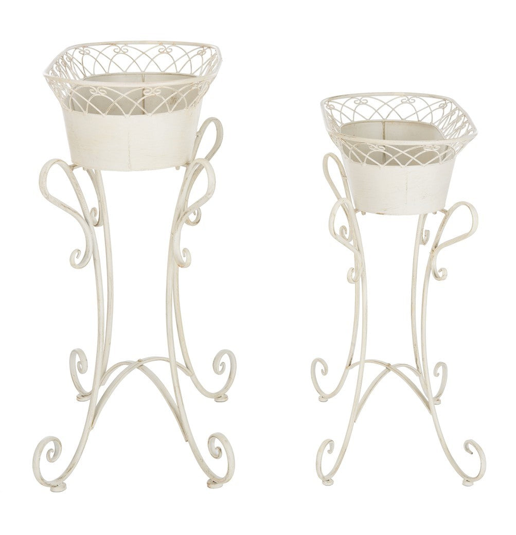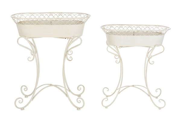 Inspired by rustic French Provencal style, these chic Hendrick Planters transform any garden, outdoor living area, or porch into a floral haven. Crafted with the gorgeous curves and scrolls of artistic ironwork, its neutral pearl white hue makes it a classic.