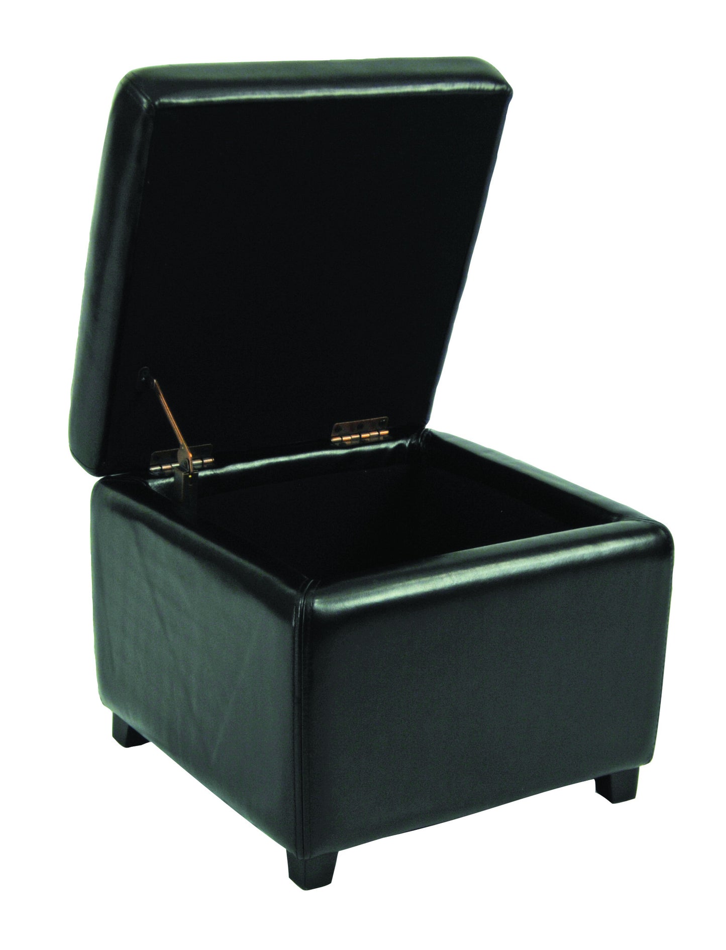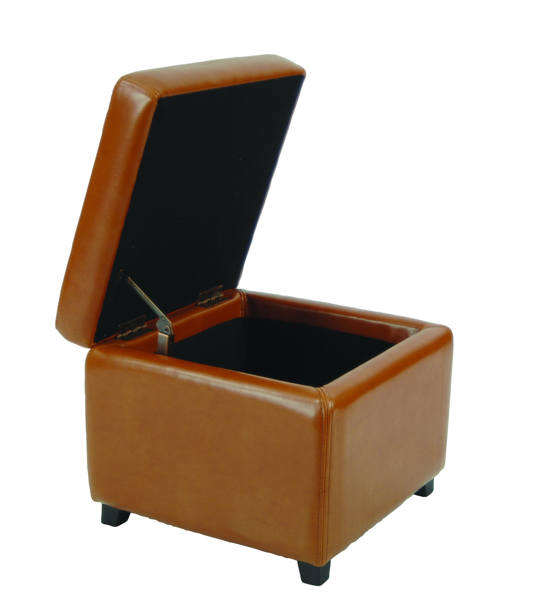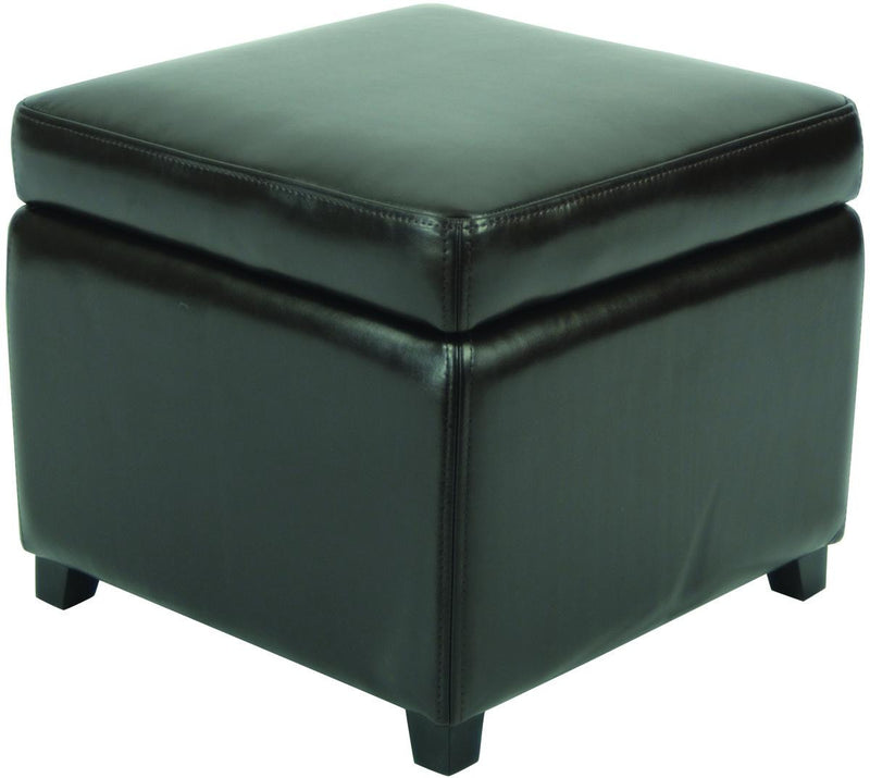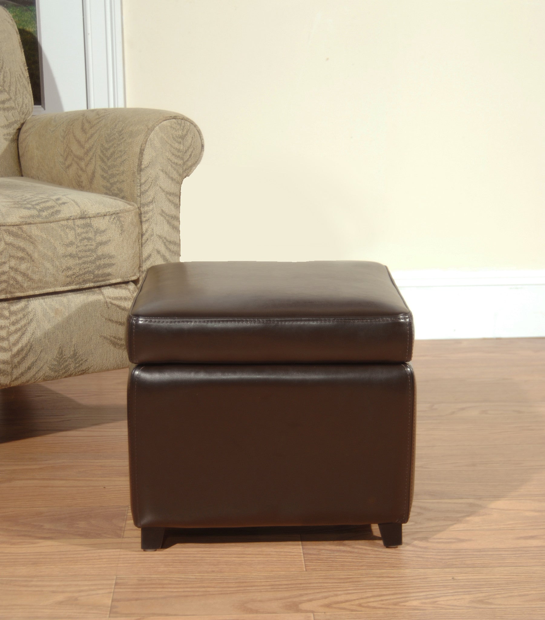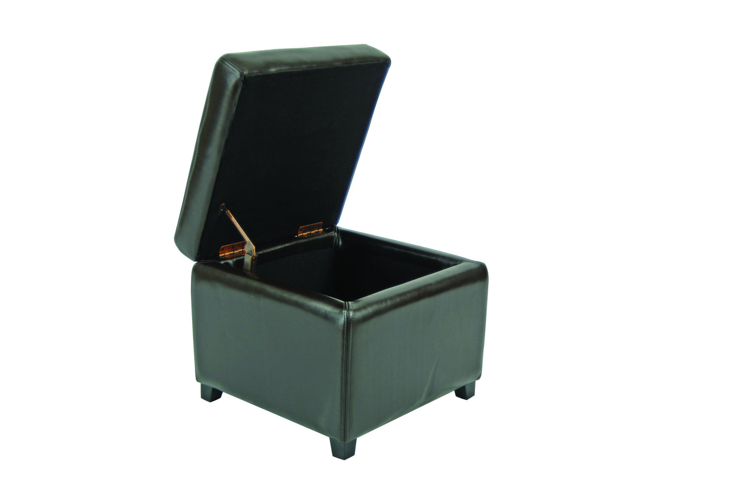 You'll flip. The soft modern style of the Jonathan Flip Top ottoman brings form and function to any room with its hinged top for handy access to items you've stowed inside. Crafted with sumptuous brown bicast leather and black beech wood legs, it's a study in handsome contemporary design.