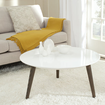 A study in contrasts, the Josiah accent table pairs a chiseled white lacquer top with dark brown wood grained legs. Evocative of Danish modern style but thoroughly new, this cocktail table works equally well in contemporary and transitional rooms.